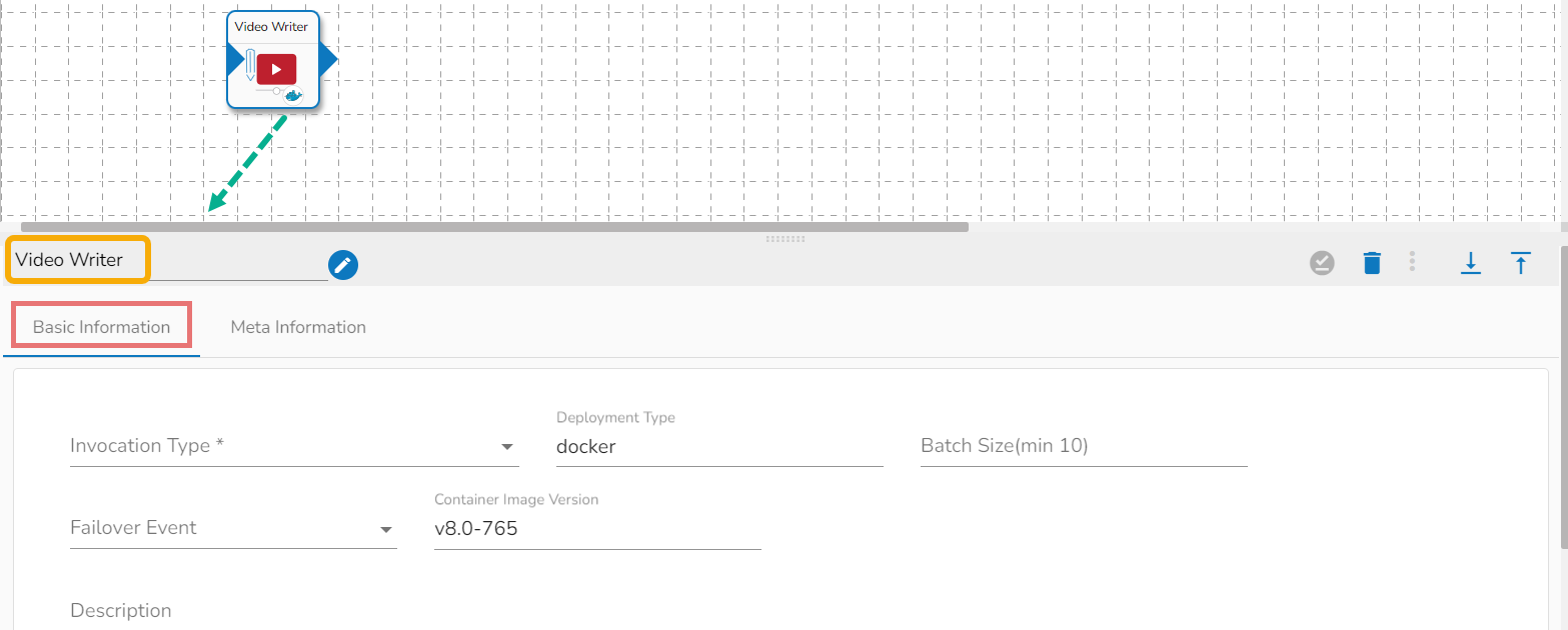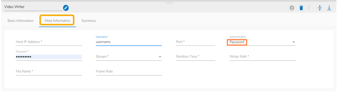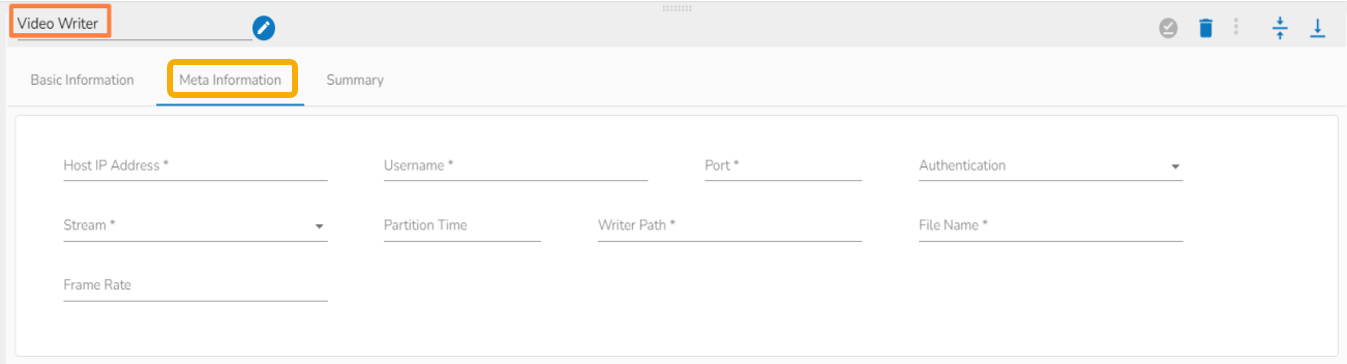 Select the Meta Information tab and provide the mandatory fields to configure the dragged Video Stream Consumer component.