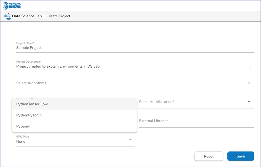 A Data Science Project created inside the Data Science Lab is like a Workspace inside which the user can create and store multiple data science experiments.