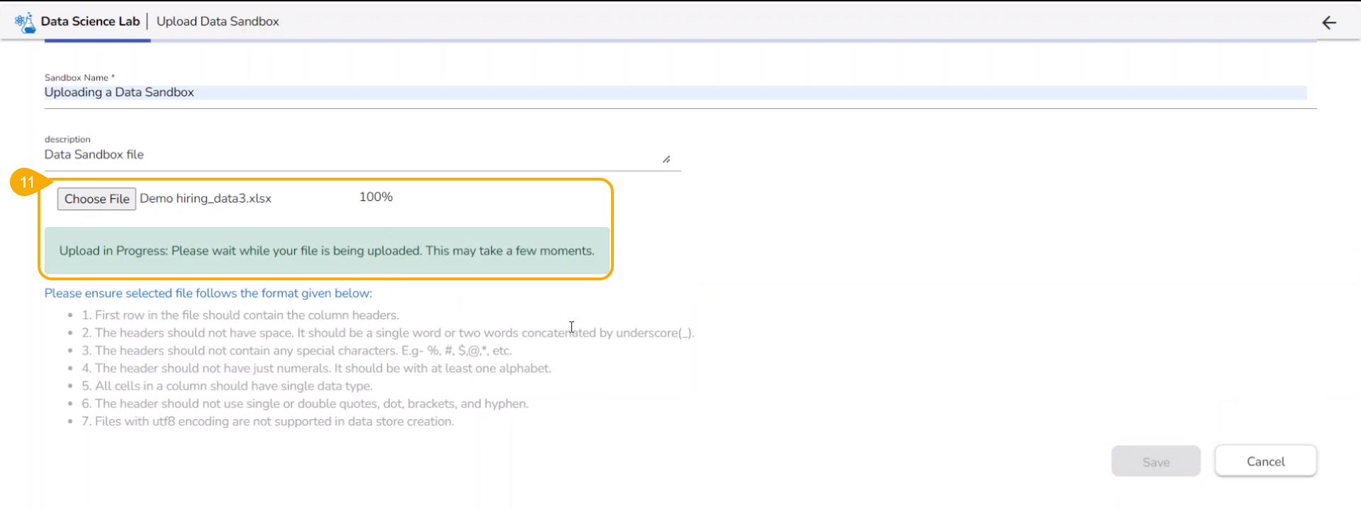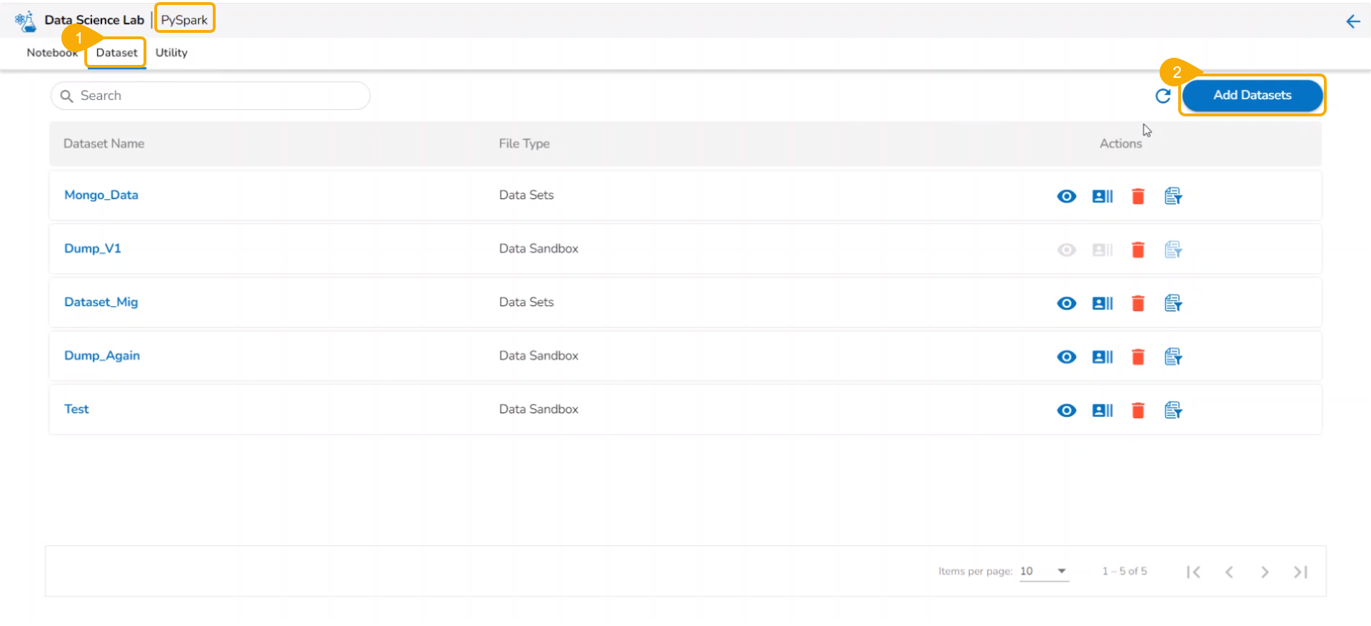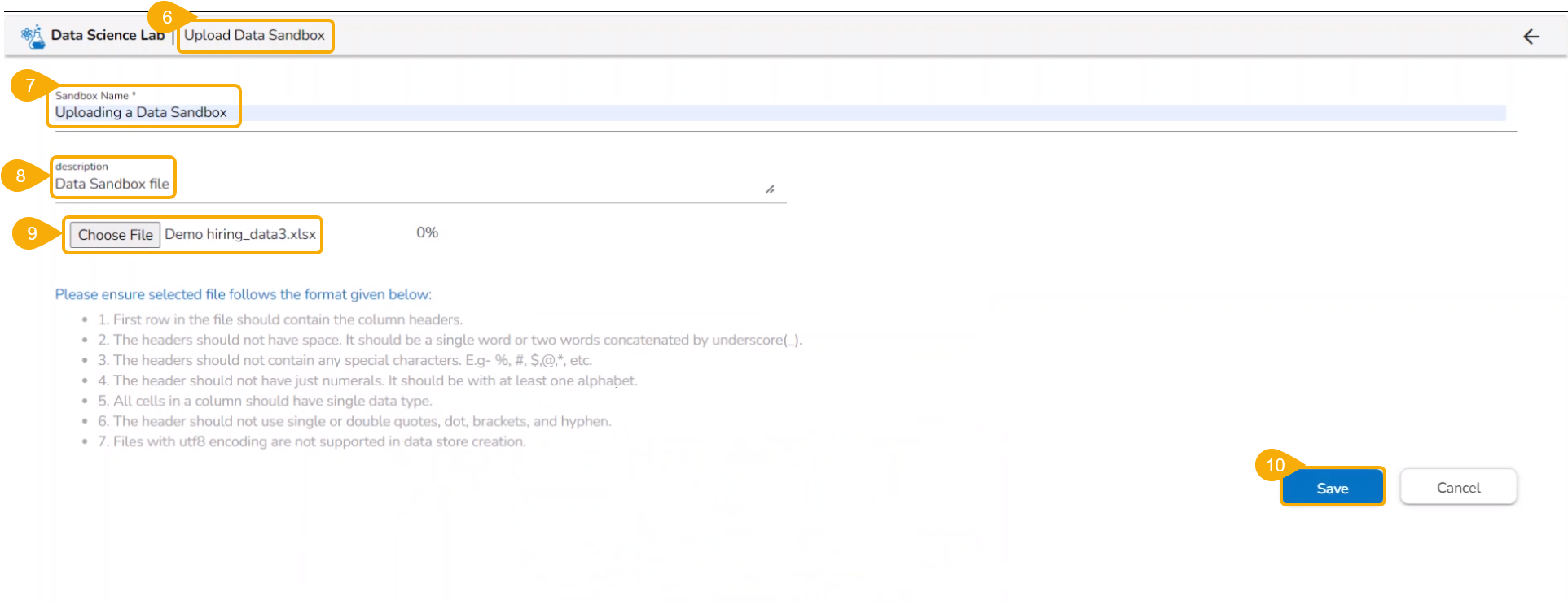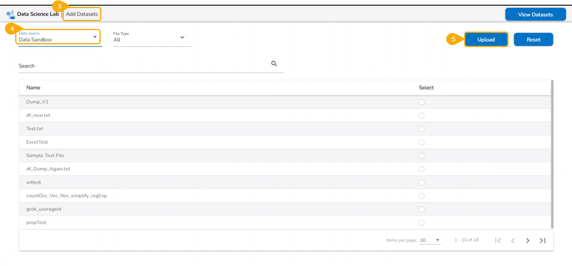 Pre-requites: The user must configure the Sandbox Settings to access the Data Sandbox option under the Data Science Lab.
