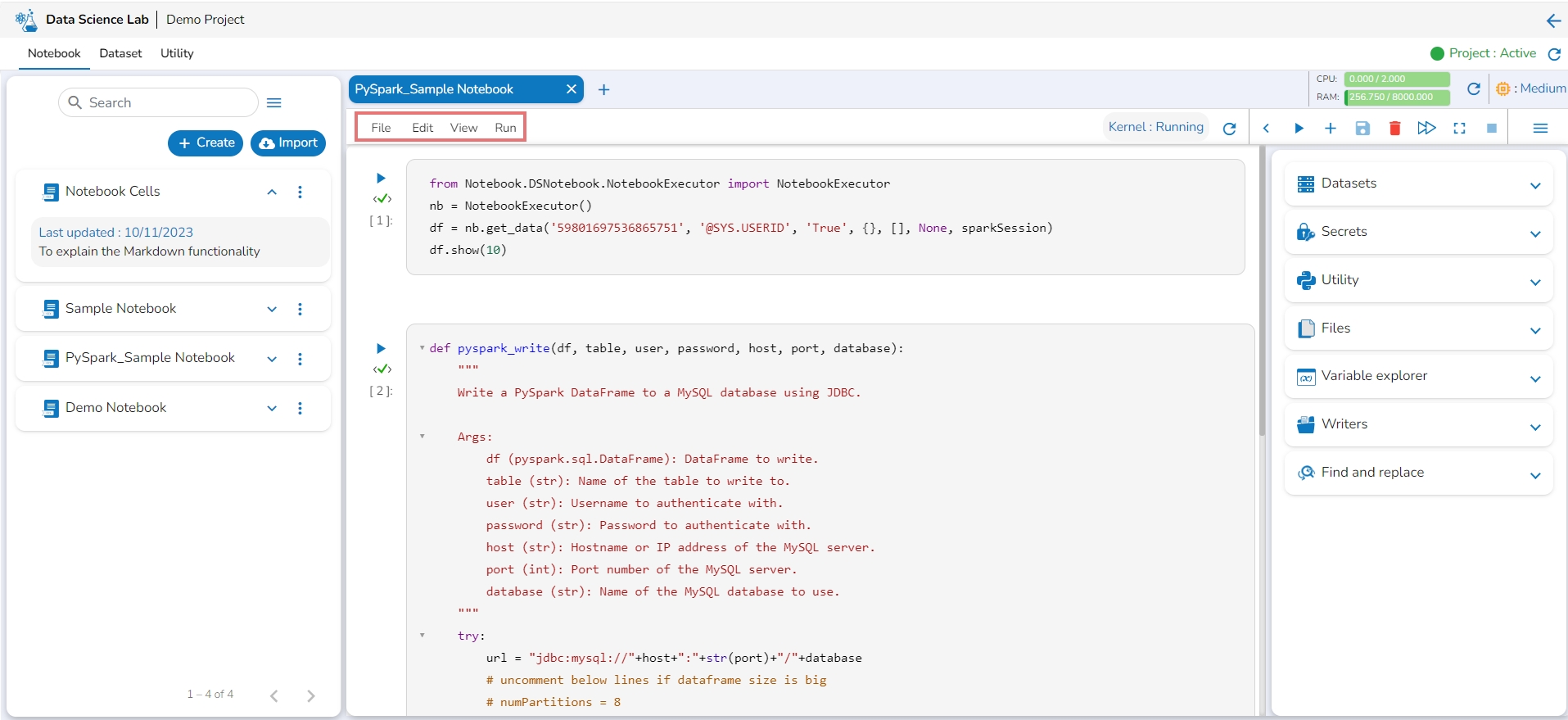 A taskbar has been provided on the top left side of the Notebook screen to instantly perform various Notebook-related tasks.