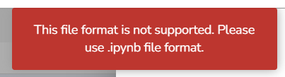 If the users try to import a notebook file with some other extension (other than .ipynb), then an error message appears to inform them about the supported format.