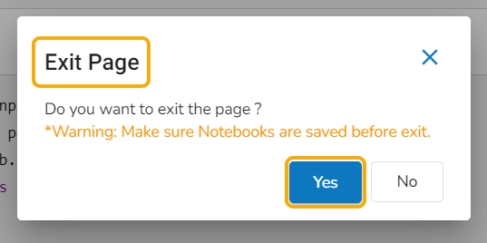 While clicking the Back icon, the Exit Page dialog box appears to ensure that the Notebook is saved. Select the Yes option to go back to the Project List page.