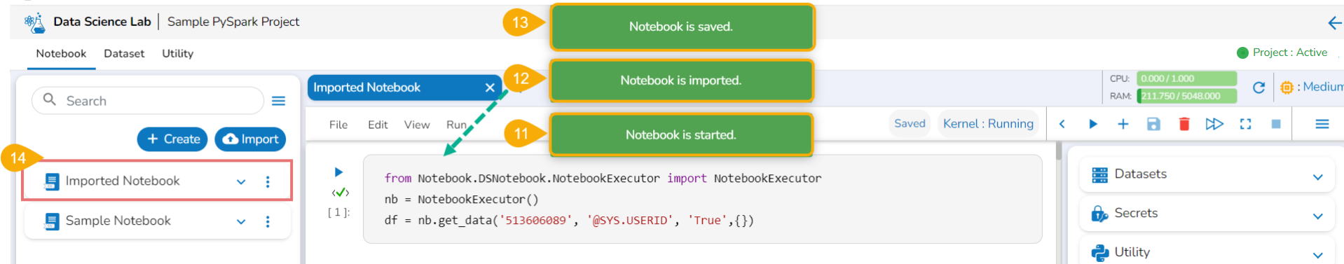 Another notification message appears to ensure that the Notebook has been imported.