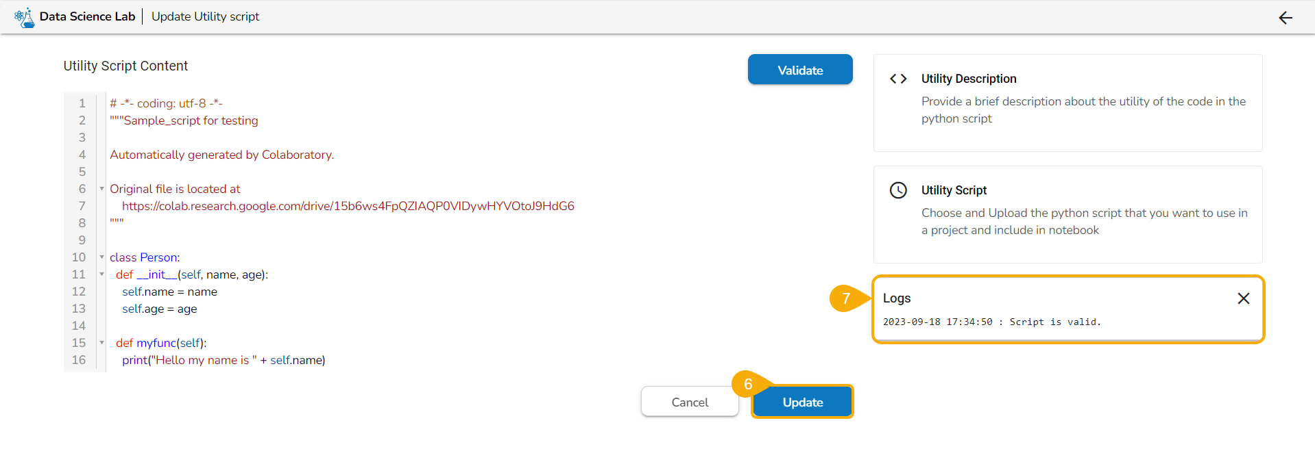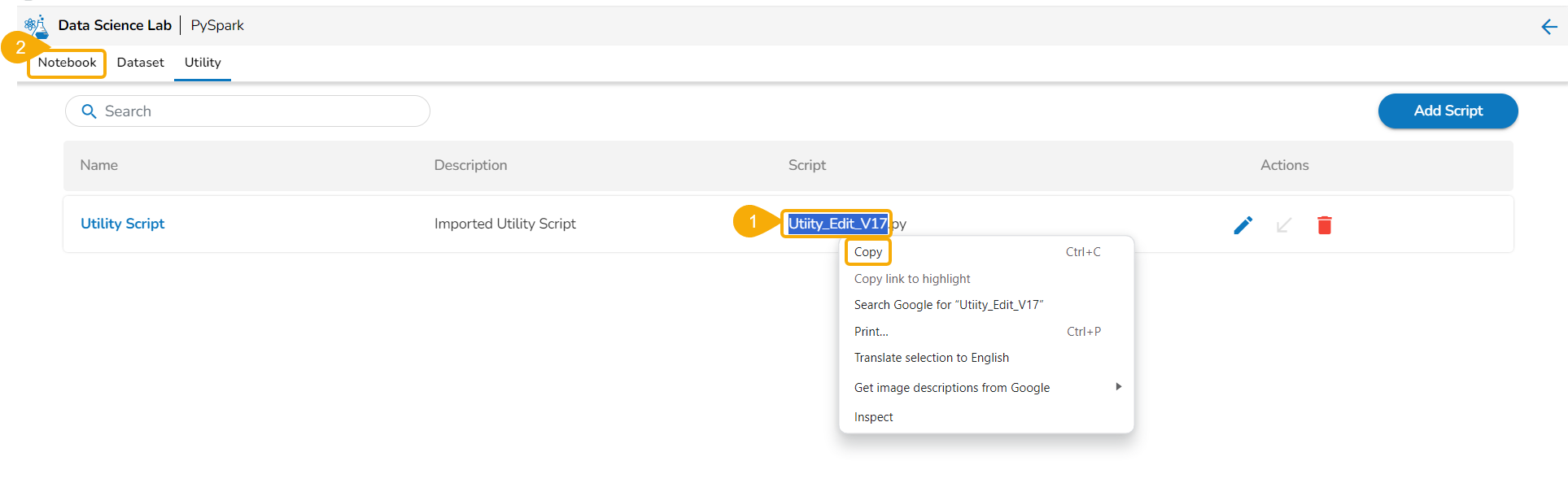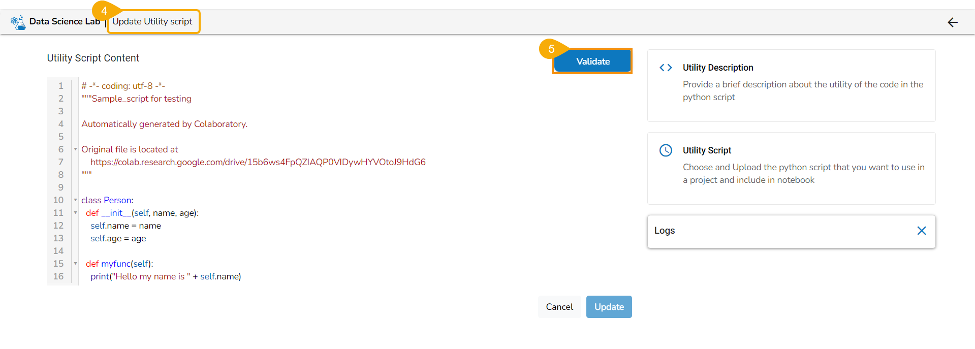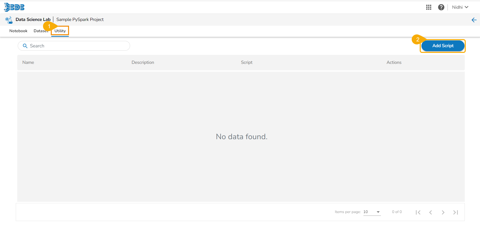 This tab allows to create and list the python scripts (.py files) that can be imported to your notebook.