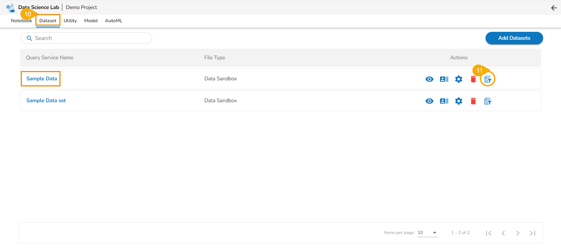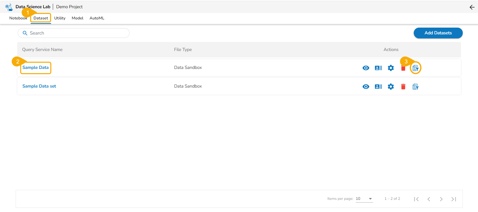 Please Note: The BDB Data Science Lab provides an option to access this functionality on the Dataset List page.