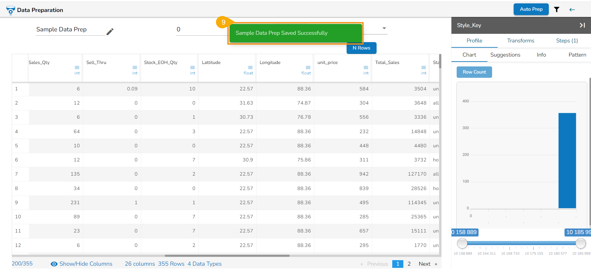 While clicking the Back icon, a notification message appears to inform the users that the data preparation has been saved.