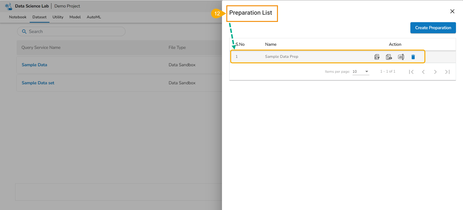 While opening the Dataset it redirects to the Preparation List displaying the saved data preparation.
