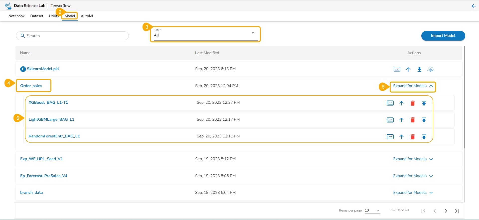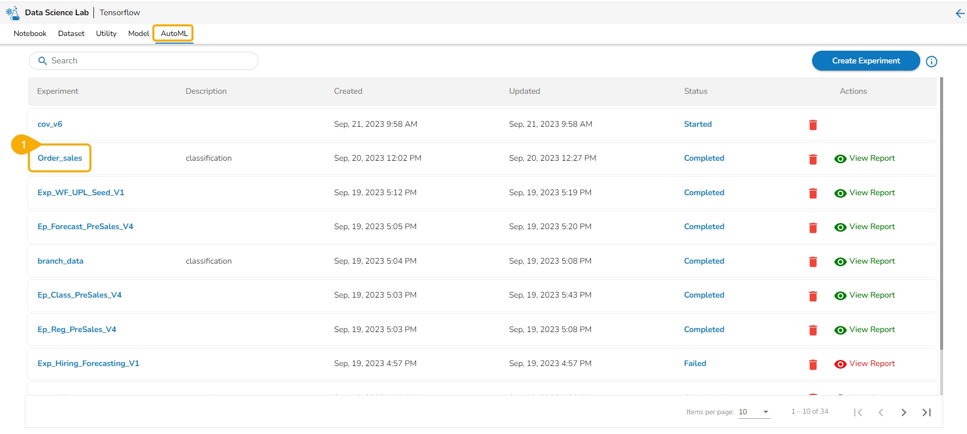The user gets to see the same Auto ML experiment listing under the Model List.