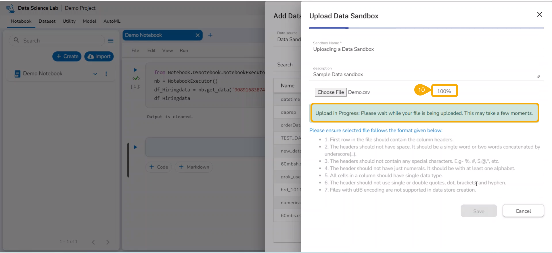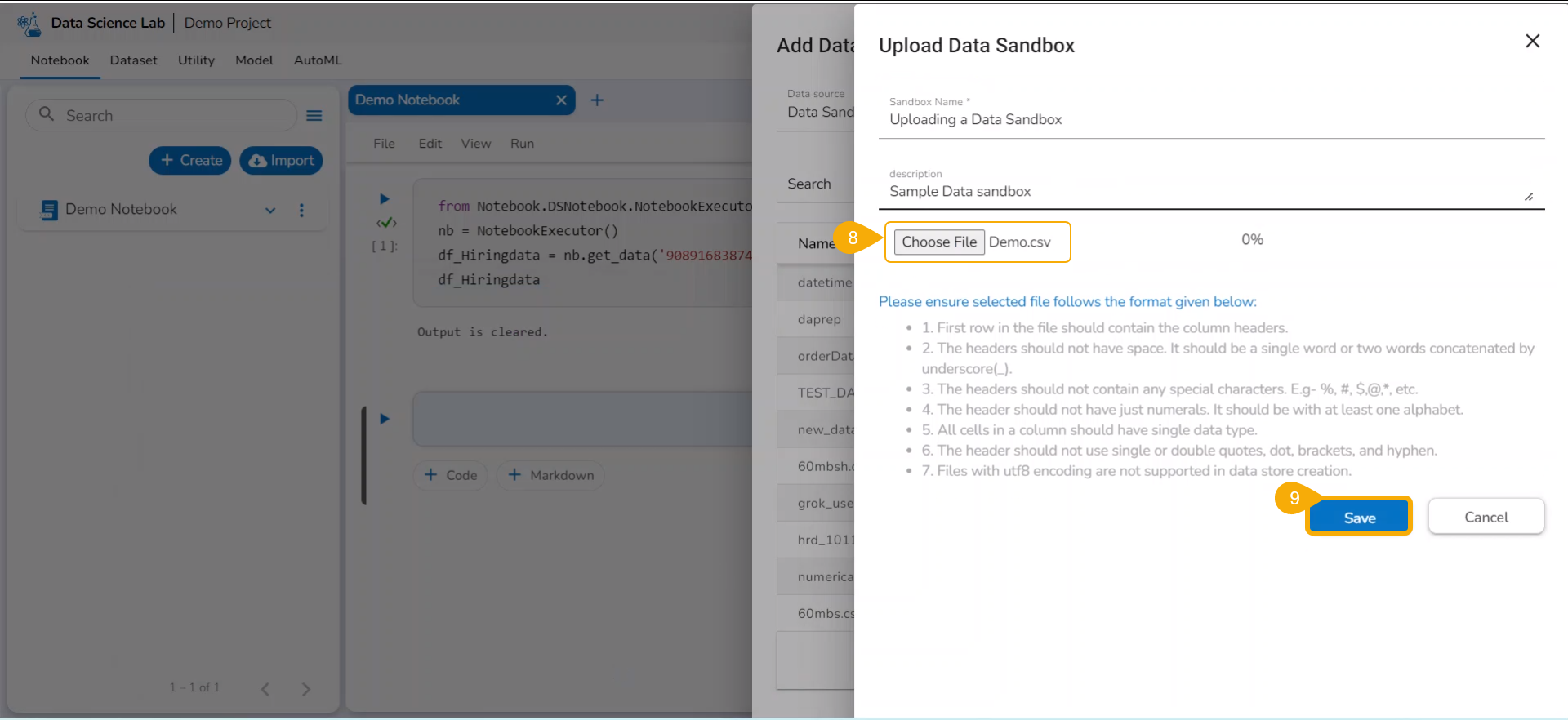 Uploading Datasets (Data Sandbox)