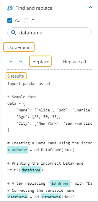 The number provided for the results indicates the number of repetitions of word/symbol to be found.