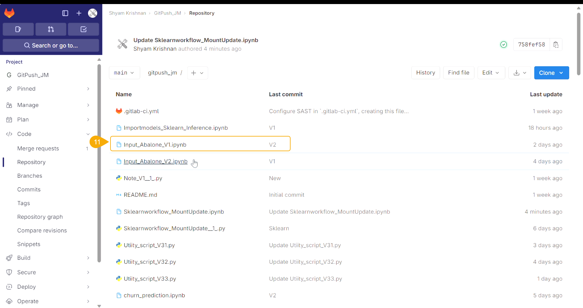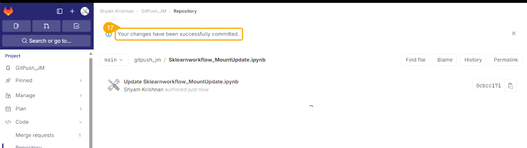 Navigate to the Git repository and access the pushed version of the Notebook script.