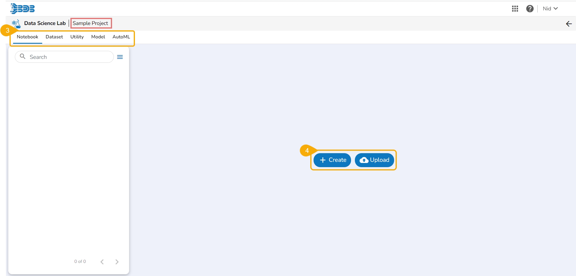 A Data Science Project created inside the Data Science Lab is like a Workspace inside which the user can create and store multiple data science experiments and their associated artifacts.