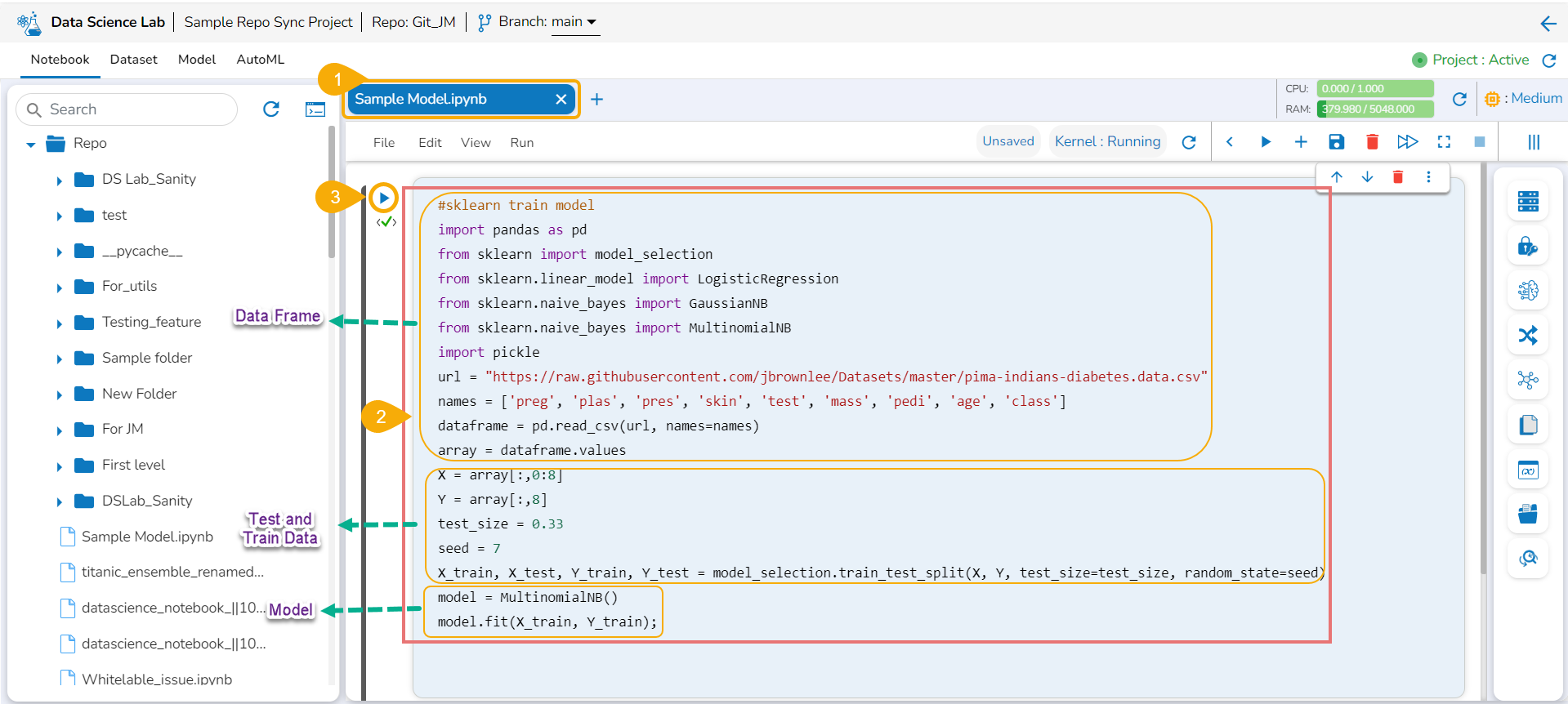 <figure><img src="https://4082649235-files.gitbook.io/~/files/v0/b/gitbook-x-prod.appspot.com/o/spaces%2F1QeOywZjV1cHo55cMW8u%2Fuploads%2FOxKTKVwZcuWgvG66JOfR%2Fimage.png?alt=media&#x26;token=12d14633-49ba-4f4d-9cc1-a0677f3bbc17" alt=""><figcaption><p><em><strong>Sample Script for a Data Science Model</strong></em></p></figcaption></figure>