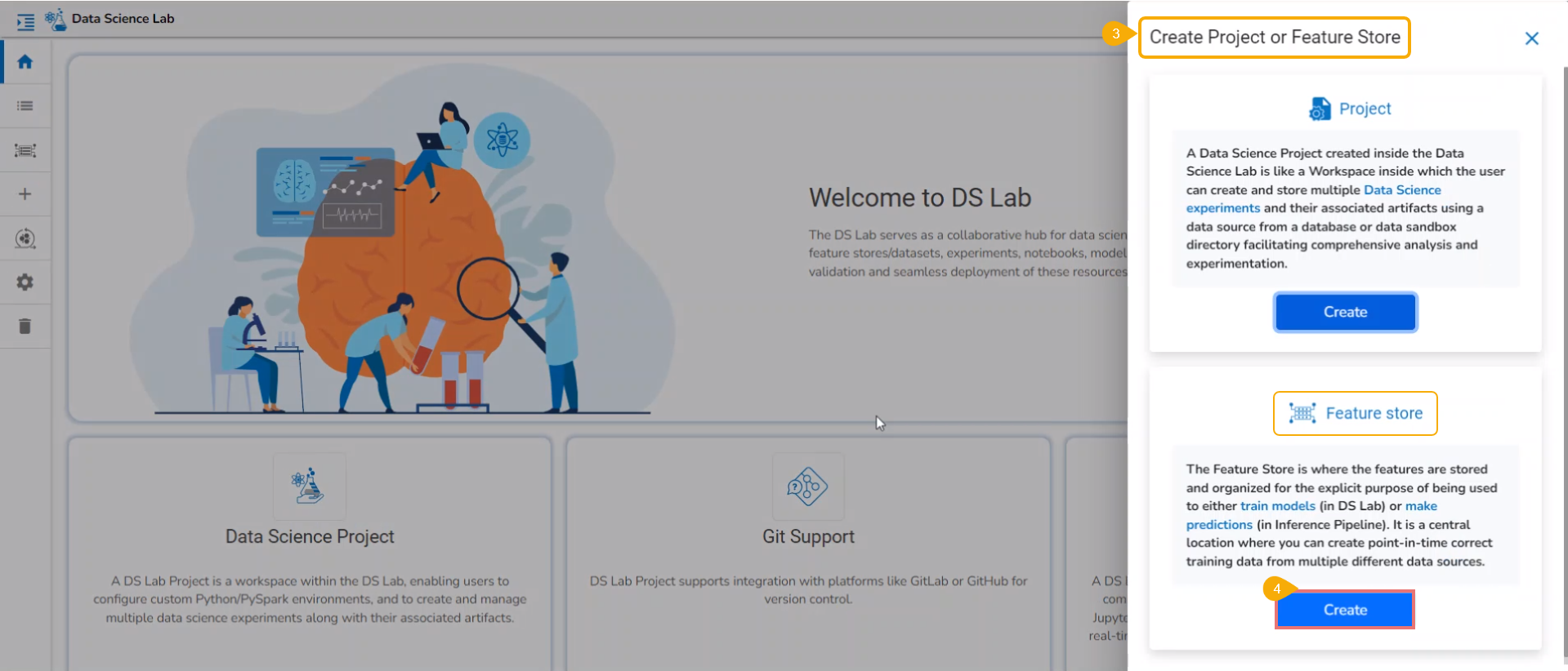* Click the ***Create*** option provided for the ***Feature Store***.