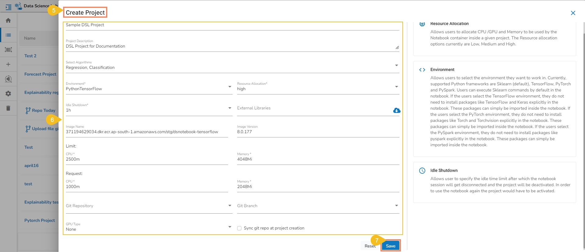 A Data Science Project created inside the Data Science Lab is like a Workspace inside which the user can create and store multiple data science experiments and their associated artifacts.