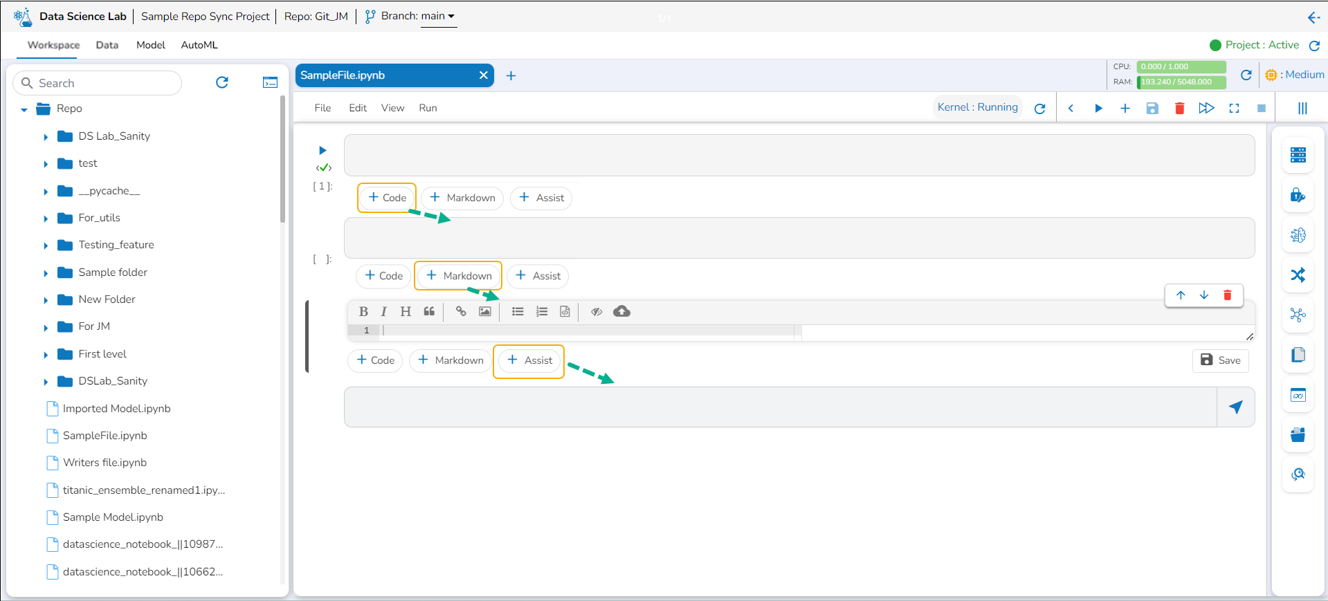 A Data Science Notebook or .ipynb file contains various types of cells inside it to create Data Science experiments.