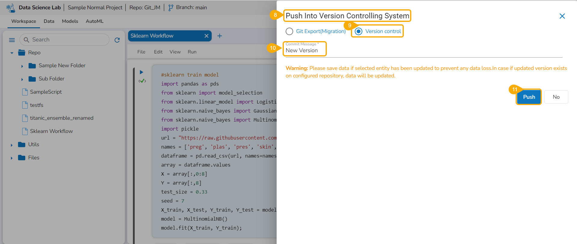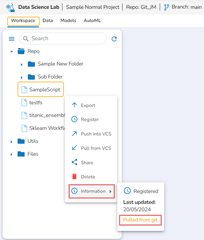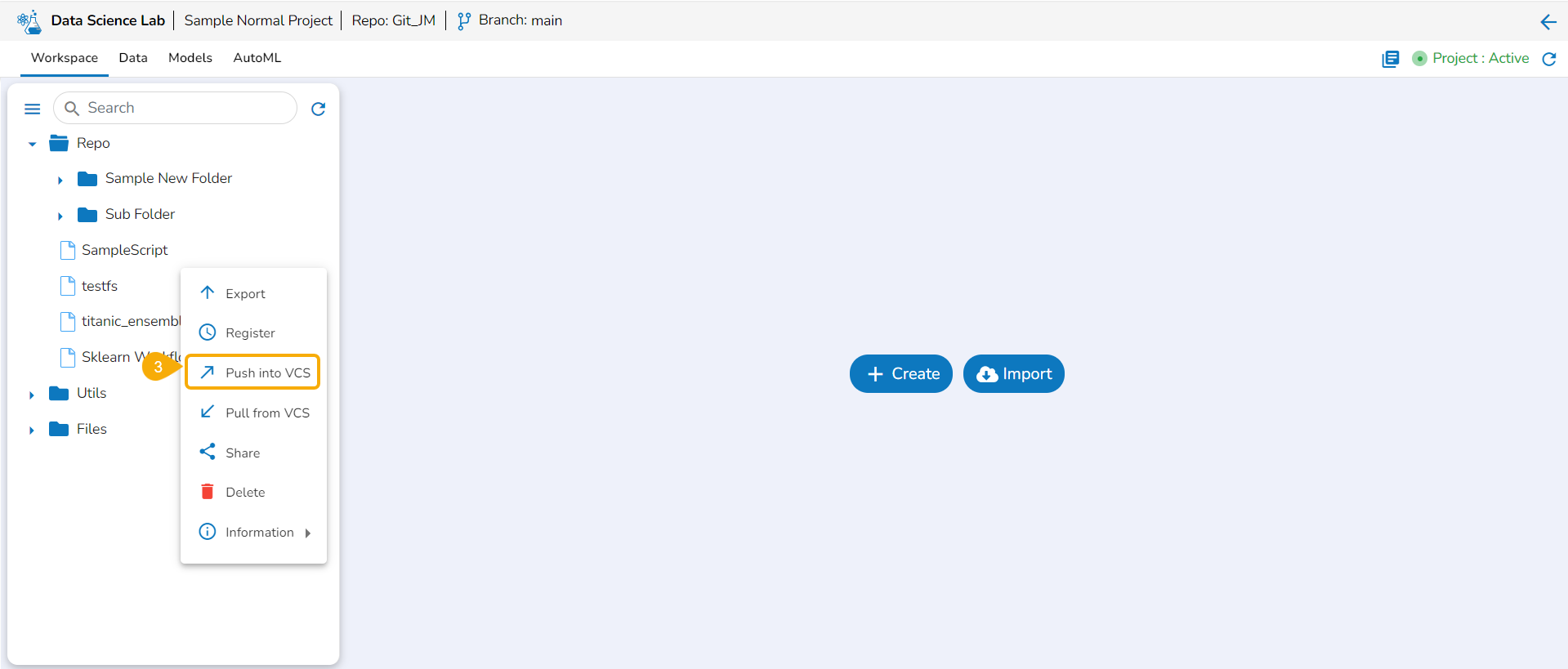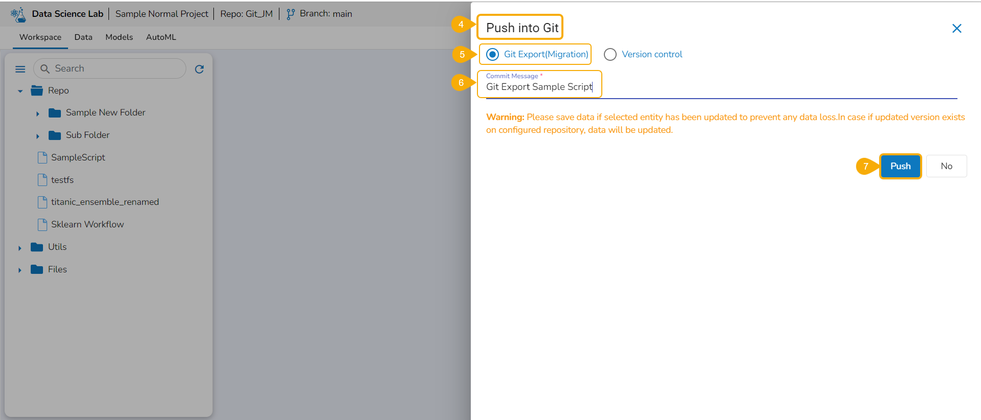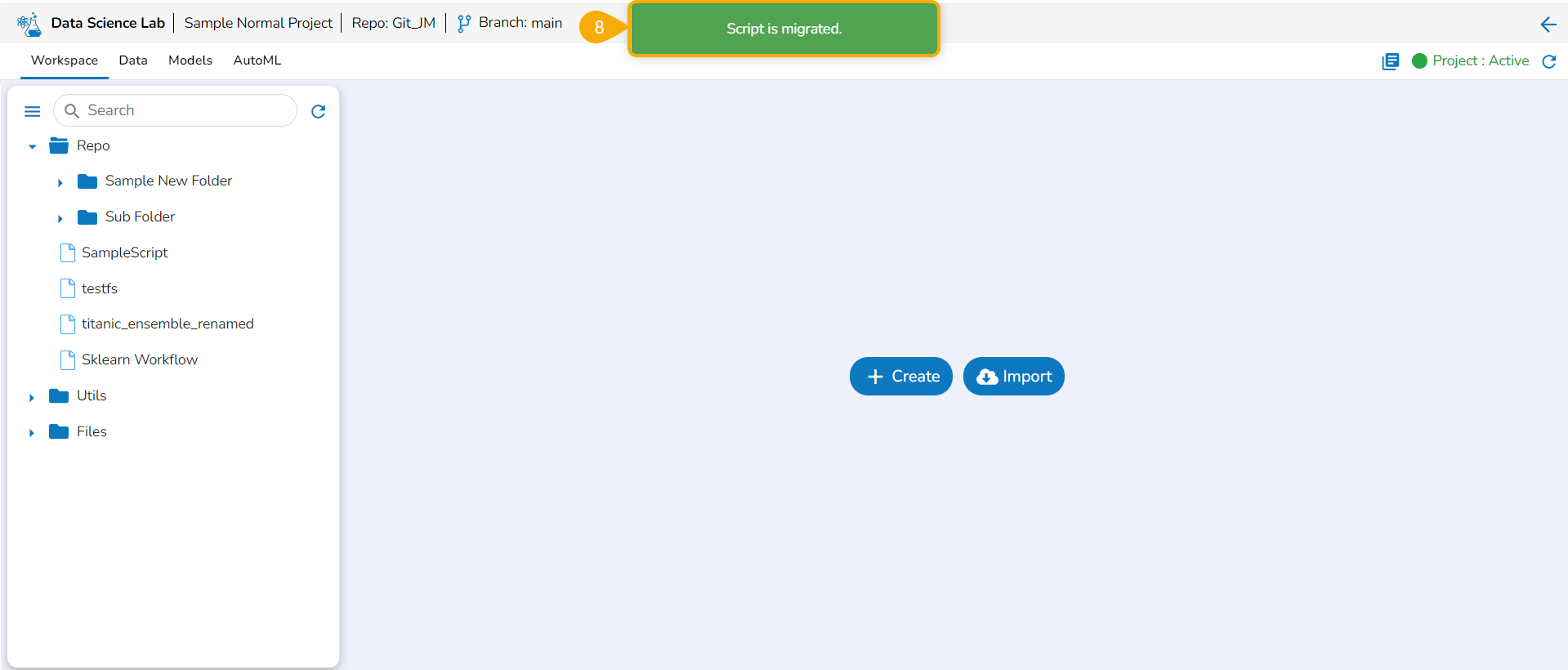 Prerequisites: It is required to set the configuration for the Data Science Lab Migration using the Version Control option from the Admin module before migrating a DS Lab script or model.