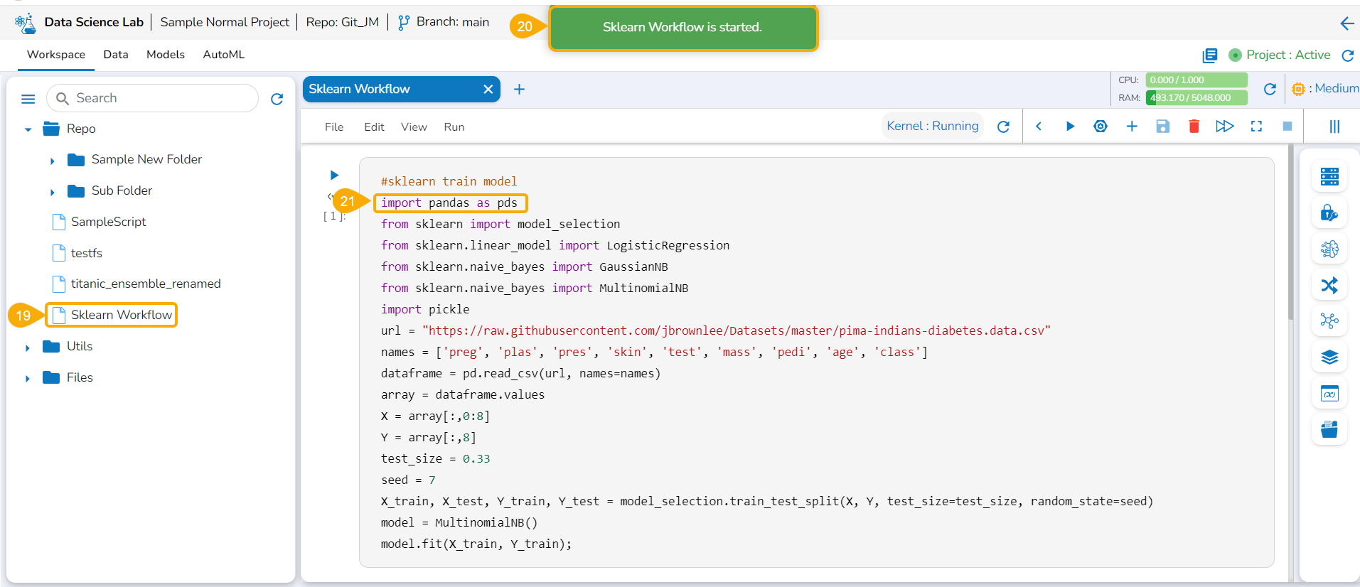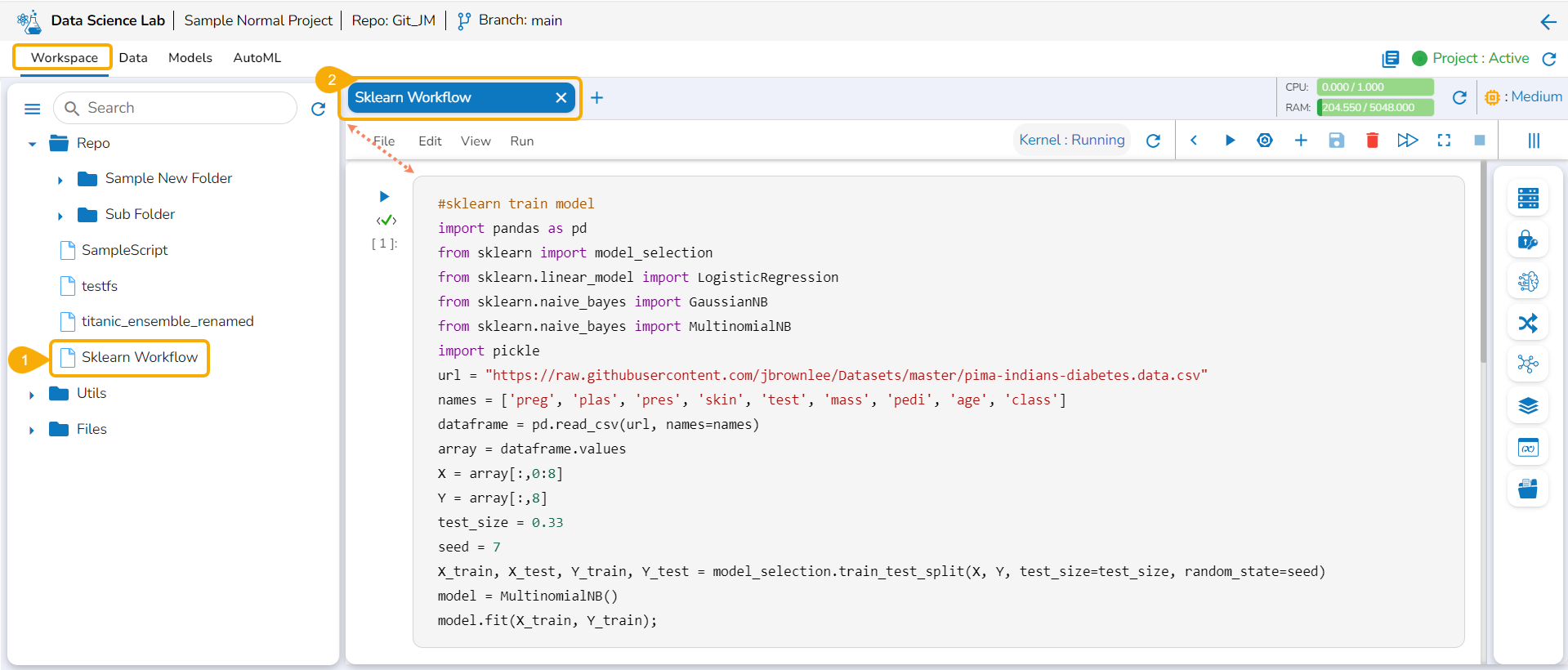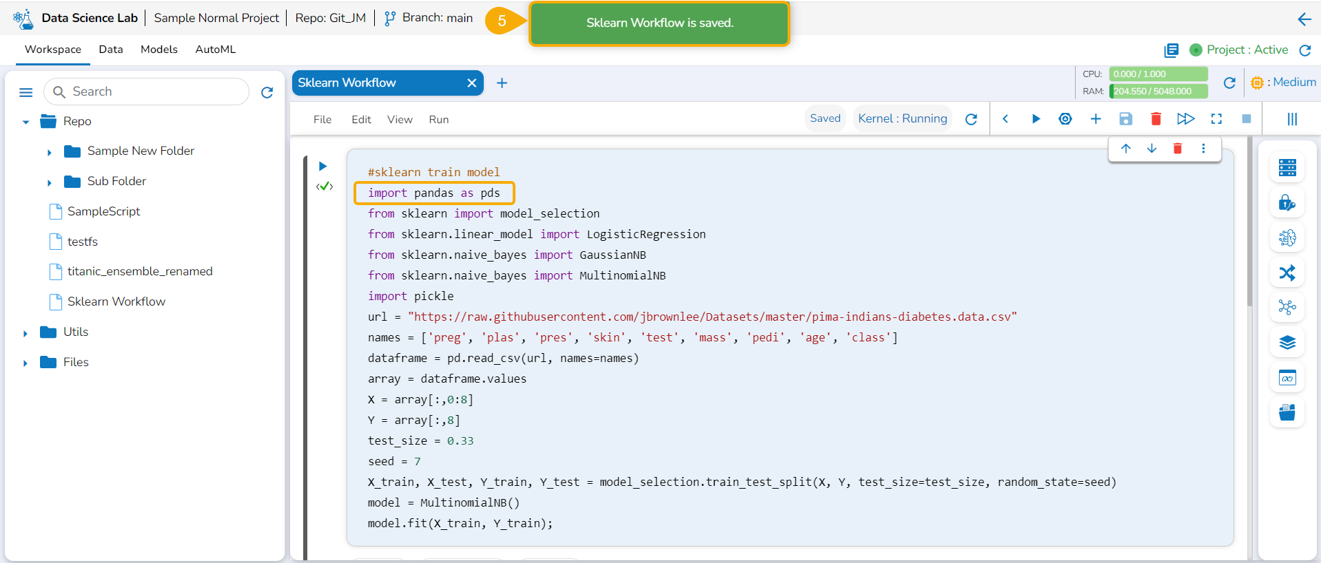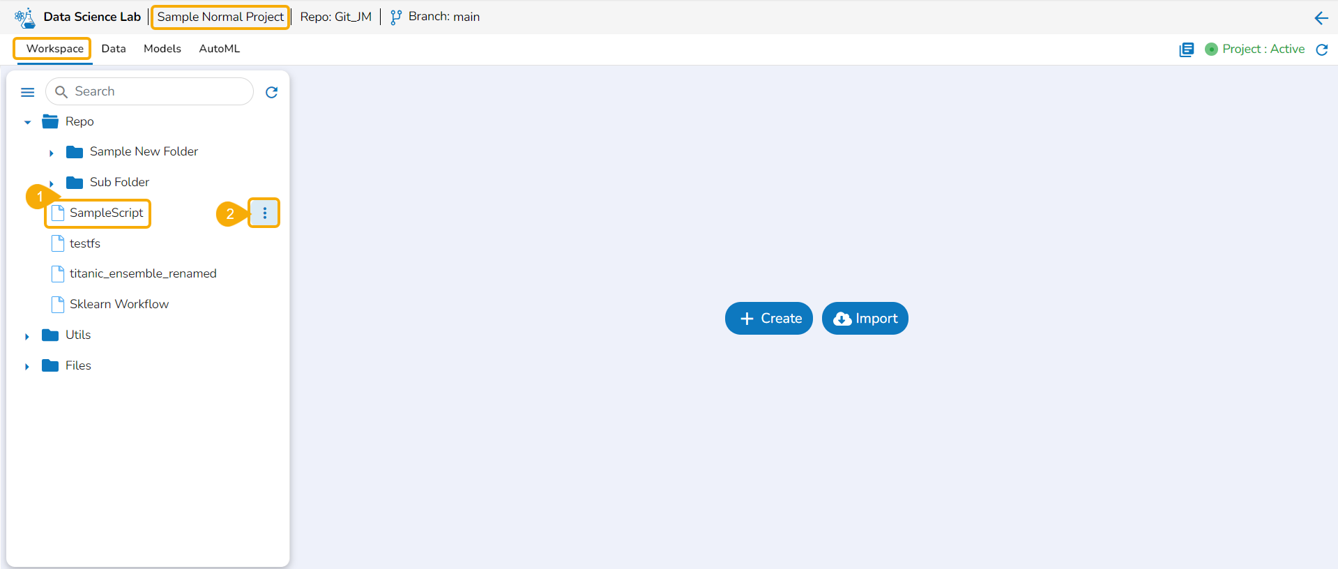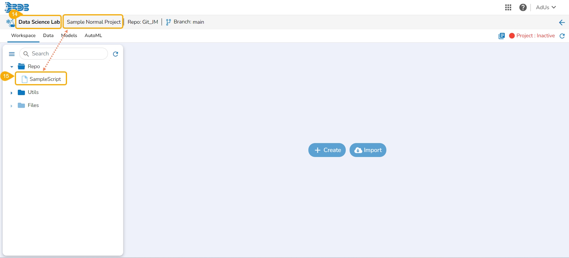 Open the Data Science Lab module and navigate to the List Project Page.