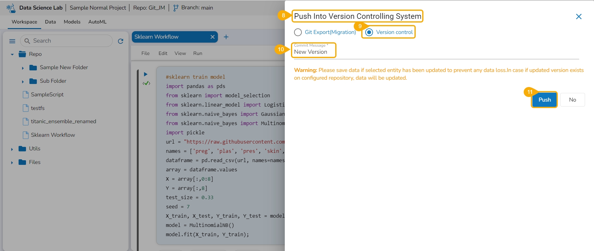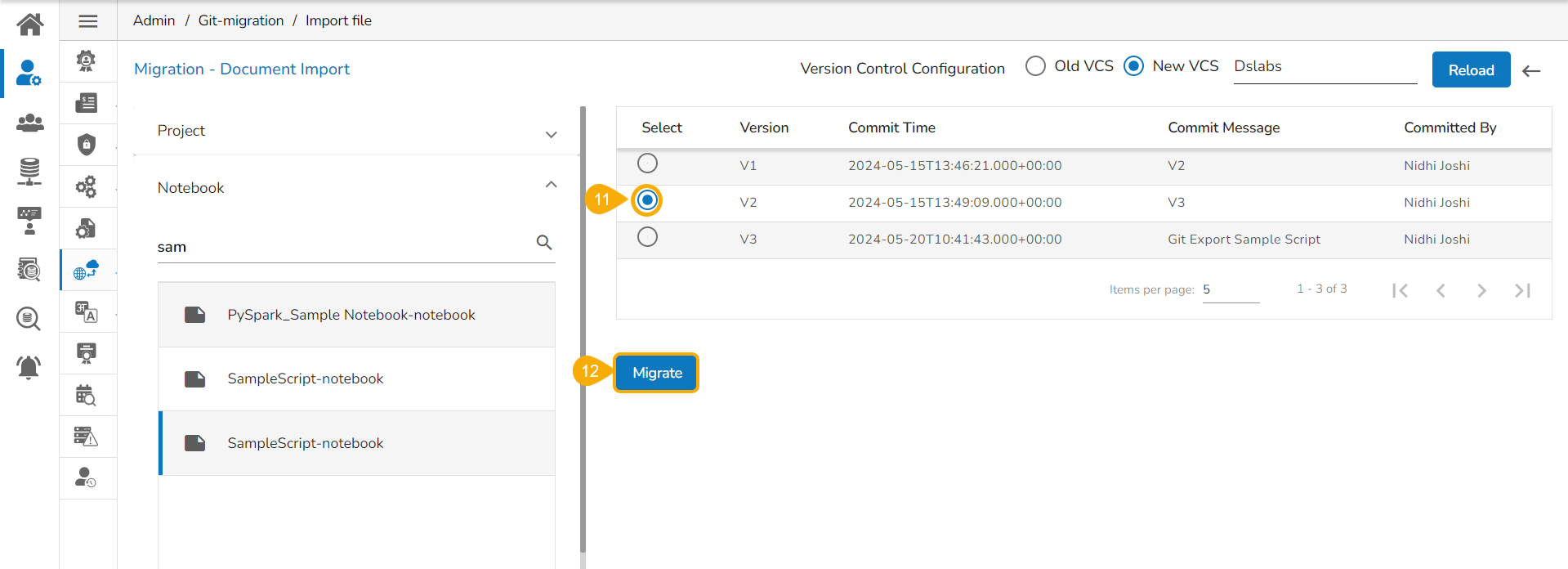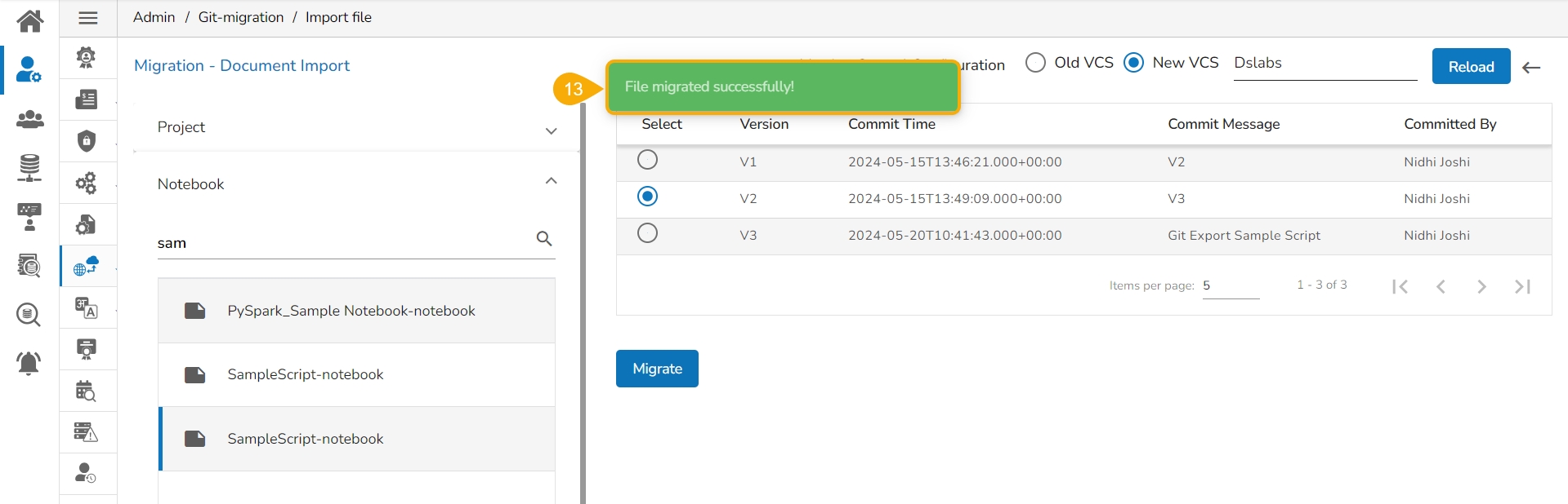 This page explains the step by step process for Notebook migration and Push to VCS functionality.