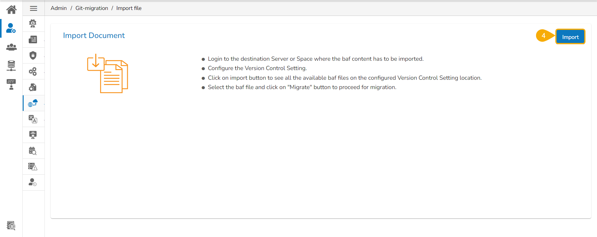 The Migration- Document Import page opens.