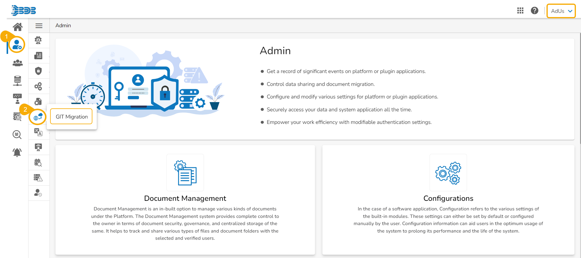 Select the GIT Migration option from the admin menu panel.