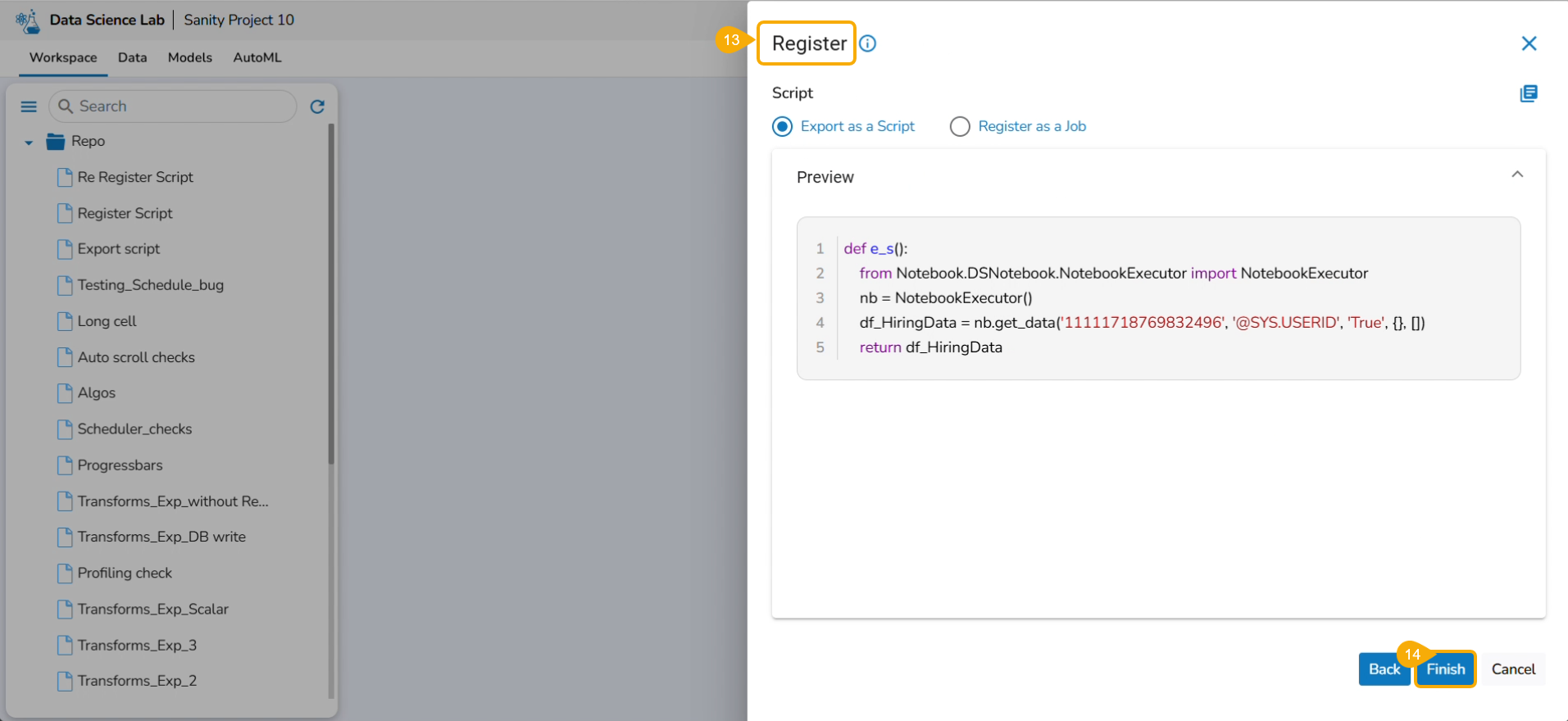 Exporting a Data Science Script