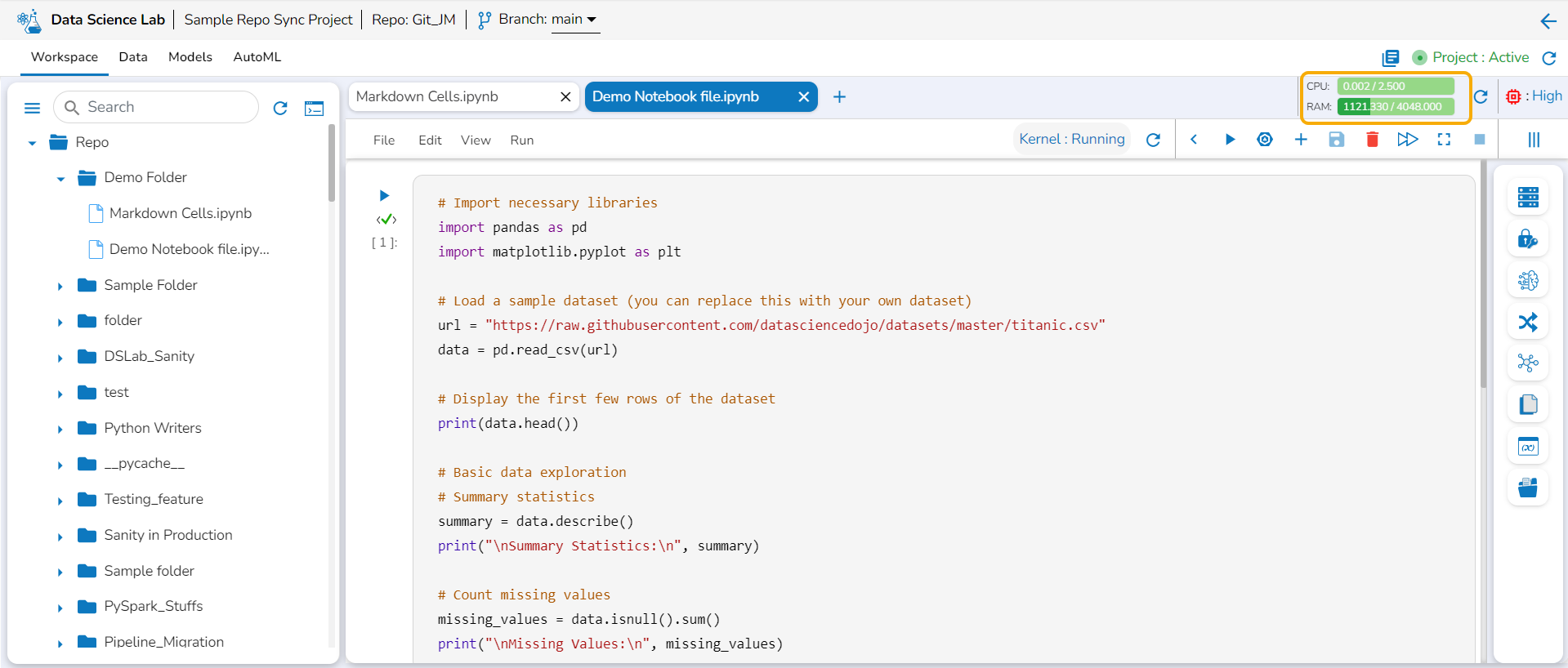 This feature helps to identify the resource utilization of a Data Science Lab Project where the Notebook is saved and executed.