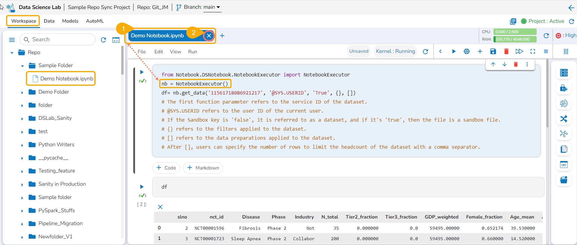 Navigate to an opened Data Science Notebook (.ipynb file) and modify the notebook content.