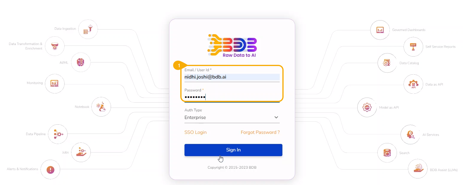 Login to the BDB Platform using registered credentials.