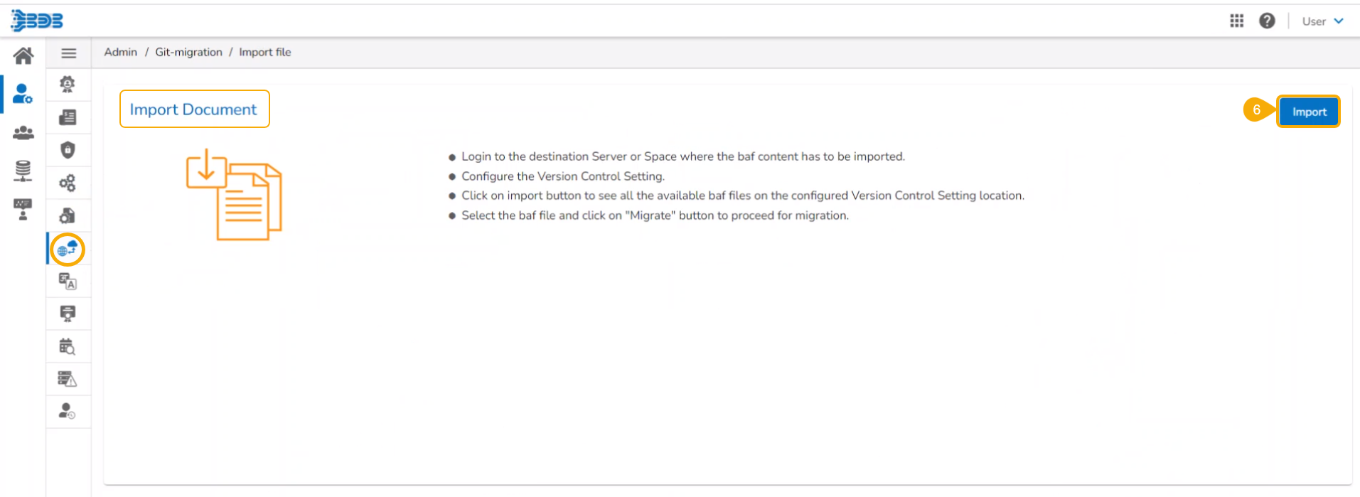 The Migration Document Import page opens.