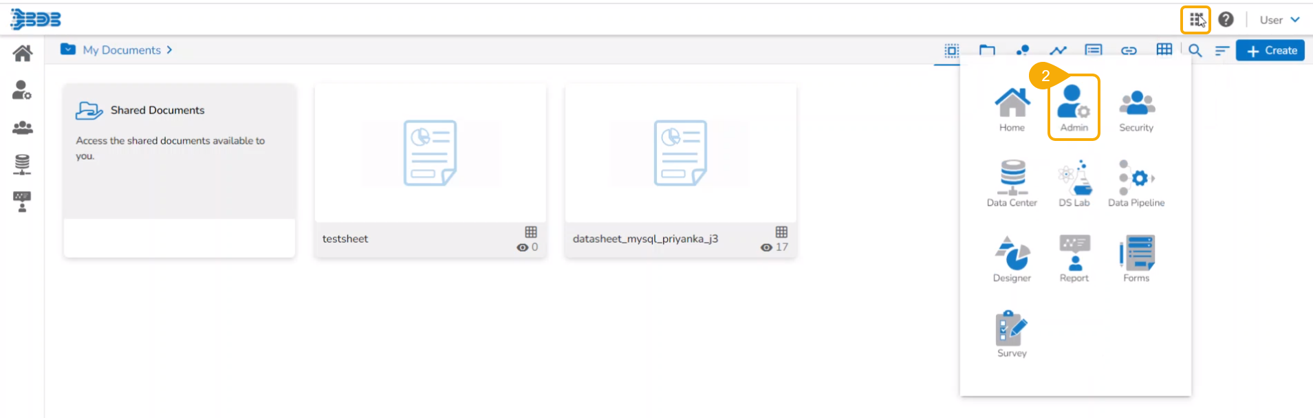Navigate to the Login page of the BDB platform and use your registered credentials to access the Platform homepage (Select a space other than the one from where you migrated the project).