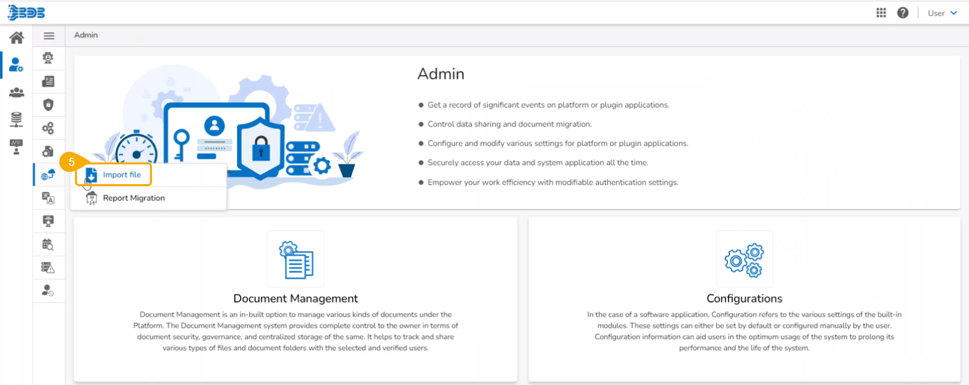 Click the Project menu from the Migration- Document Import drop-down menu.