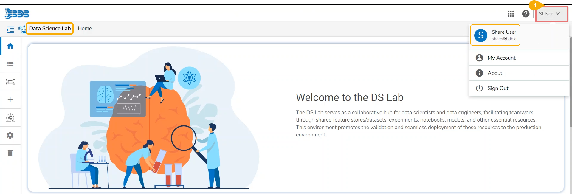 Navigate to the Projects page of the DS Lab plugin.