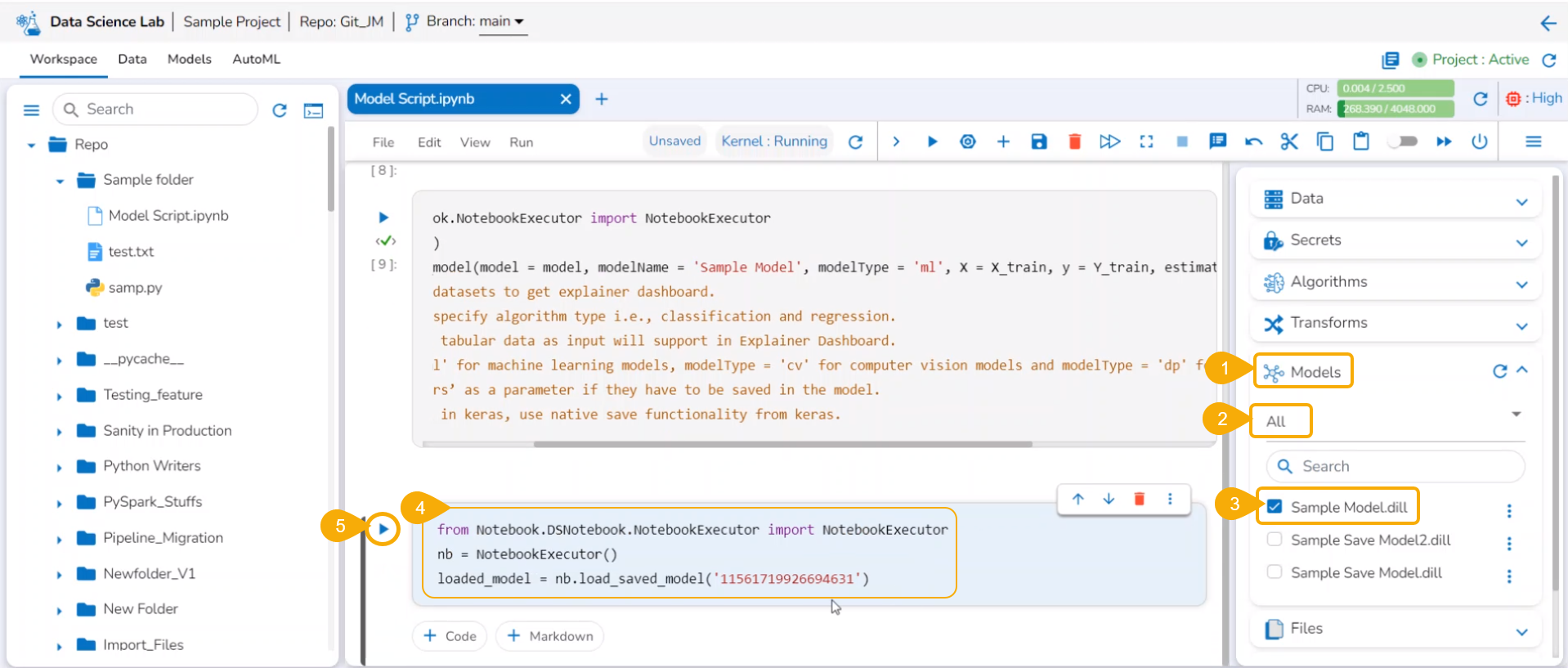 Once the Notebook script is executed successfully, the users can save them as a model. The saved model can be loaded into the Notebook.