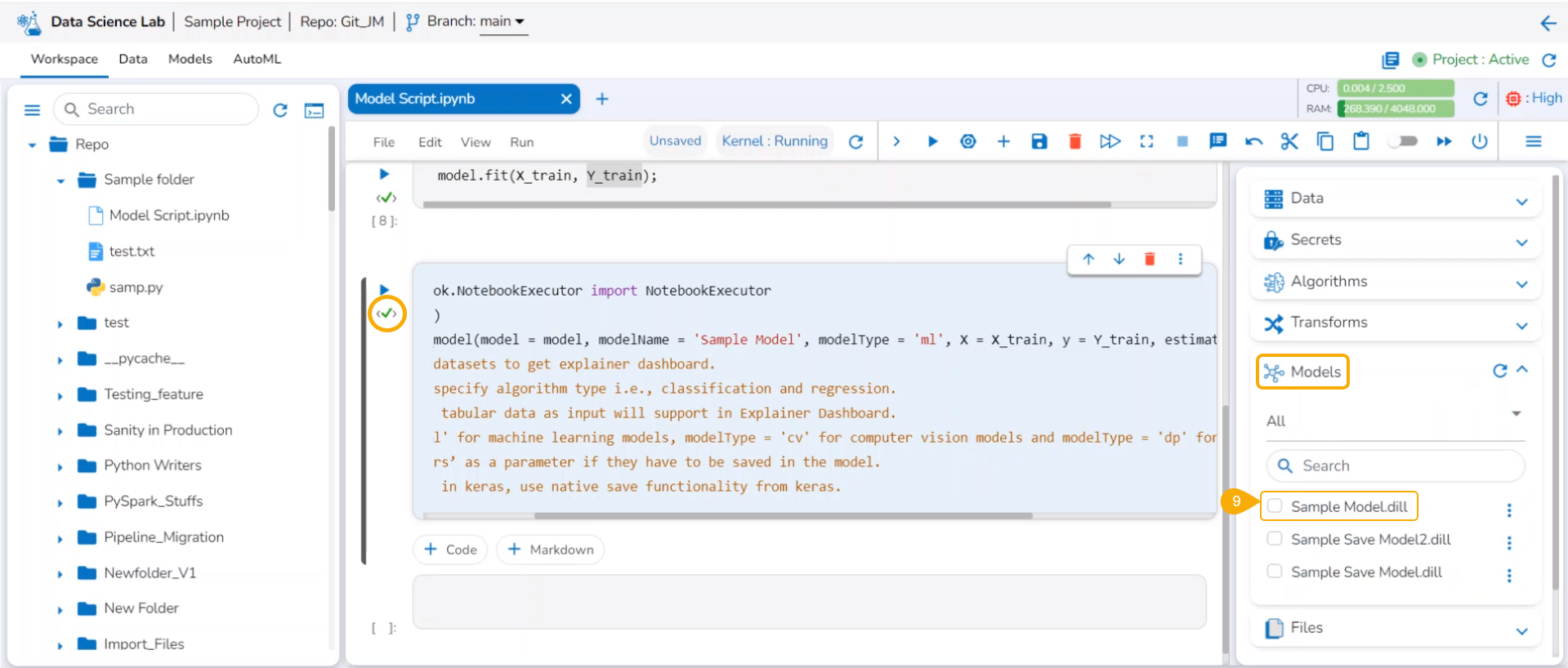 * After the code gets executed, the Model gets saved under the ***Models*** tab.