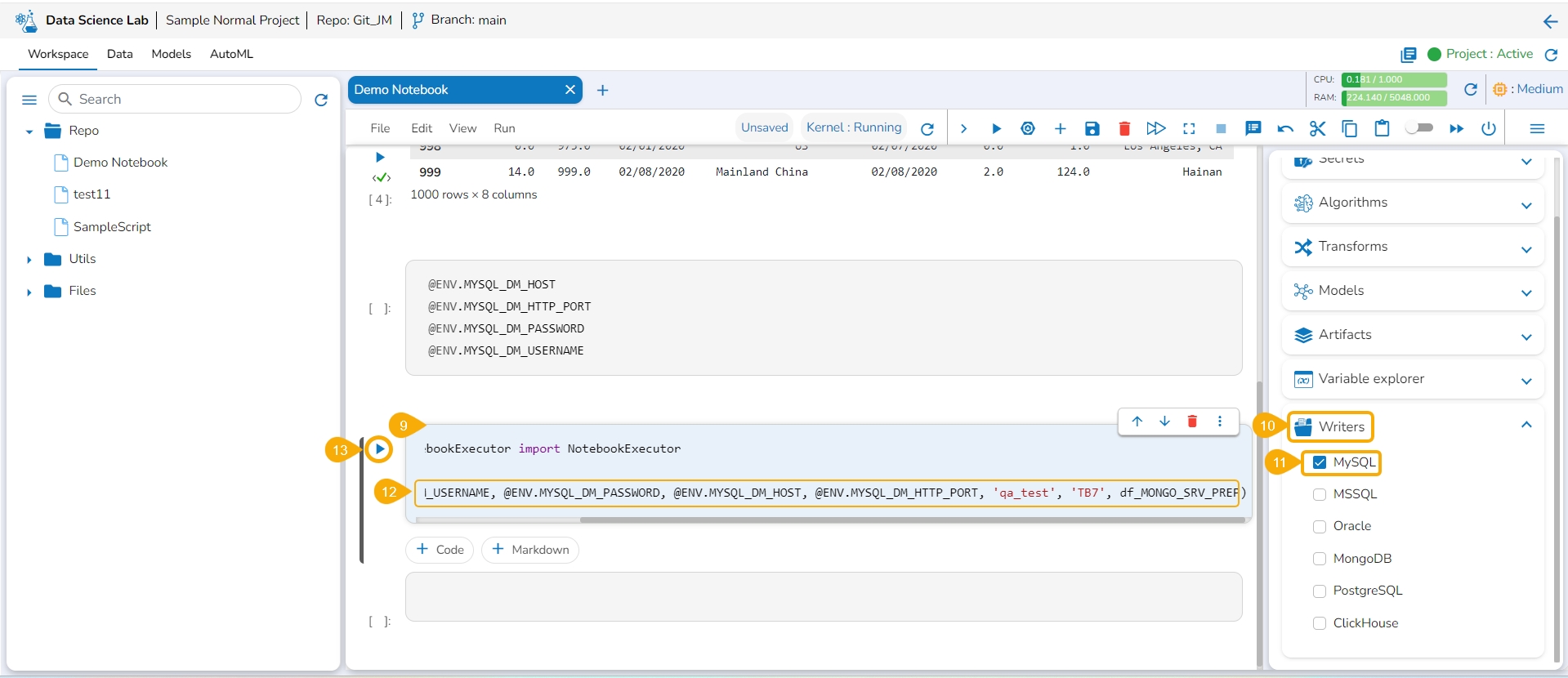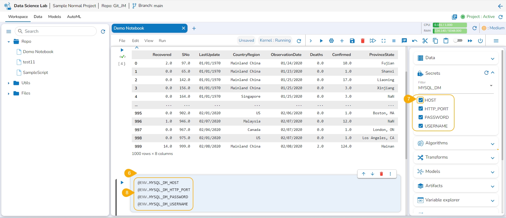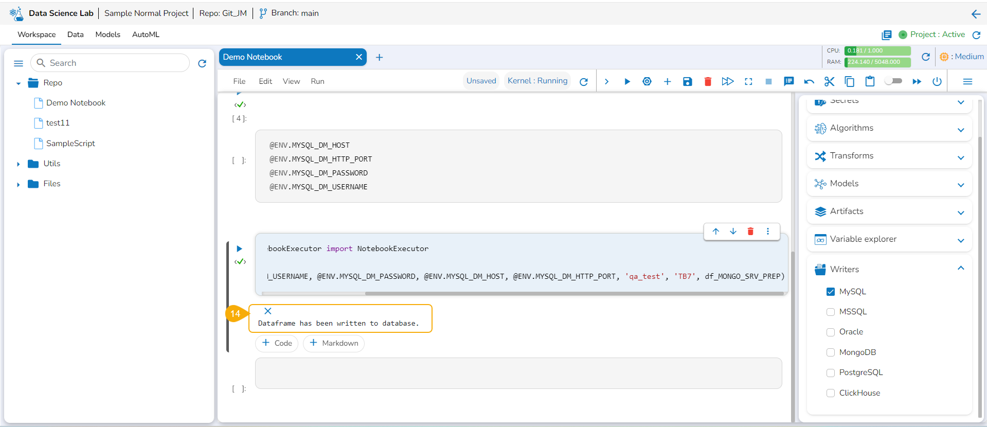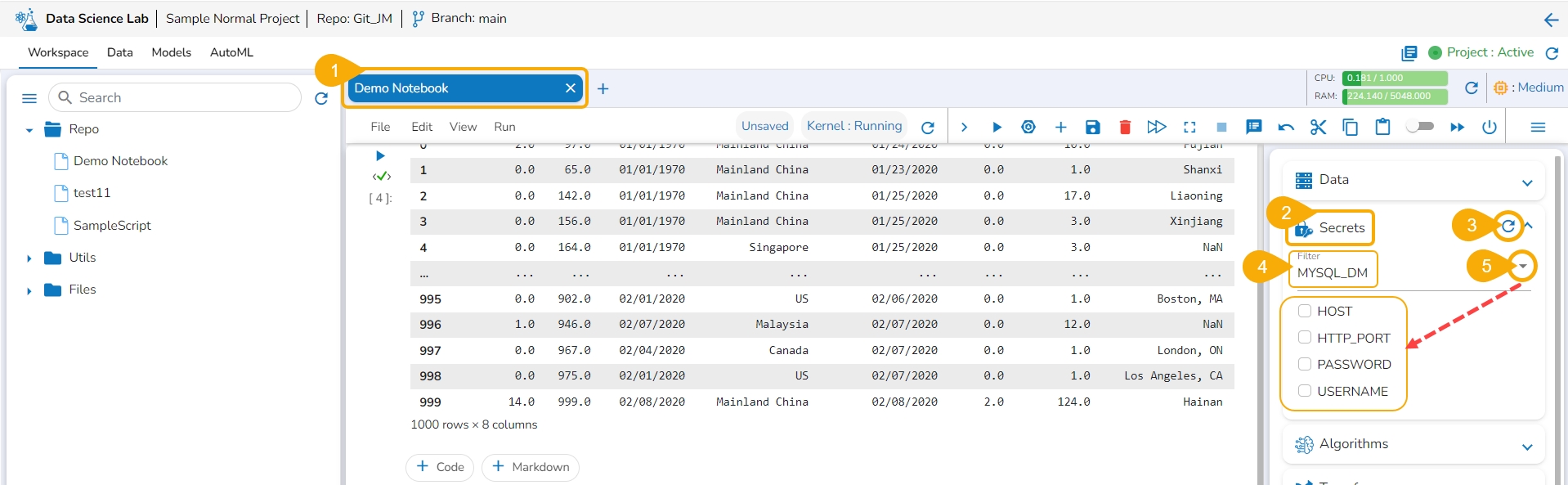 The users must configure the Secret Management using the Admin module of the platform before attempting the Secret option inside the DS Lab module.