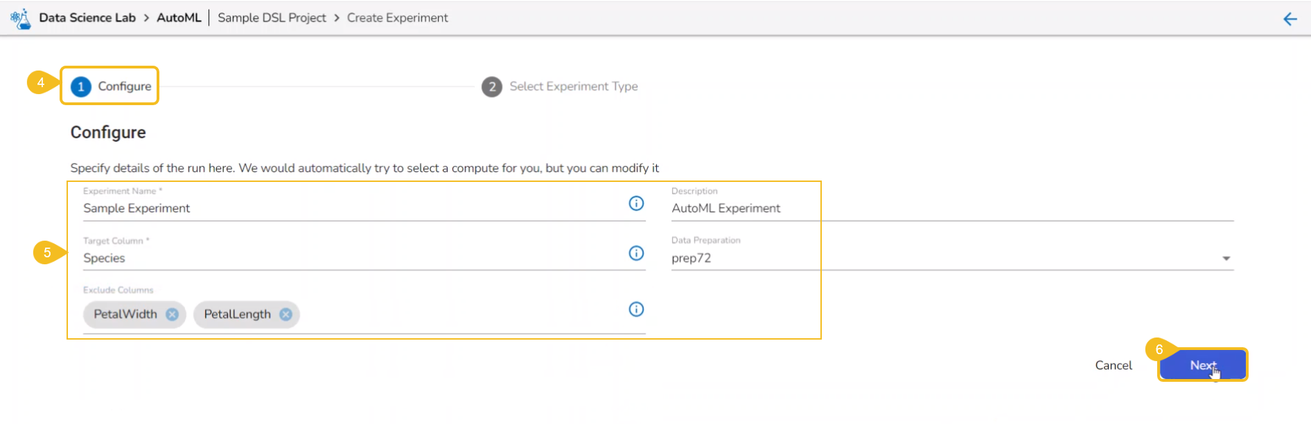 The Configure tab opens (by default) while selecting the Create Experiment option.