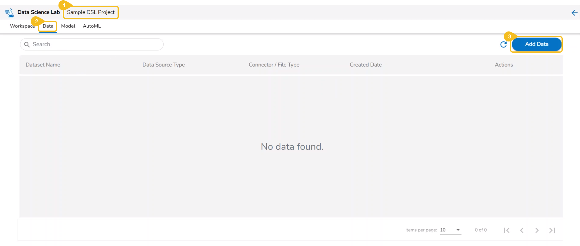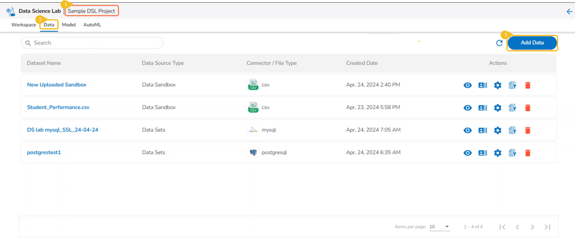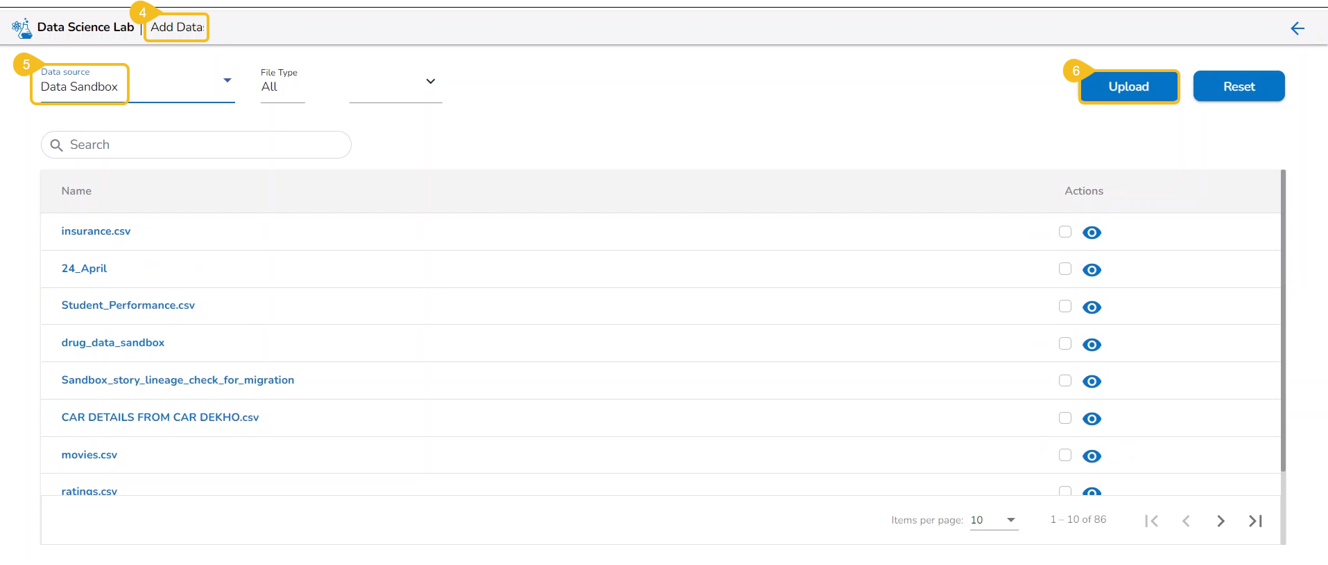 Pre-requite: The user must configure the Sandbox Settings to access the Data Sandbox option under the Data Science Lab.