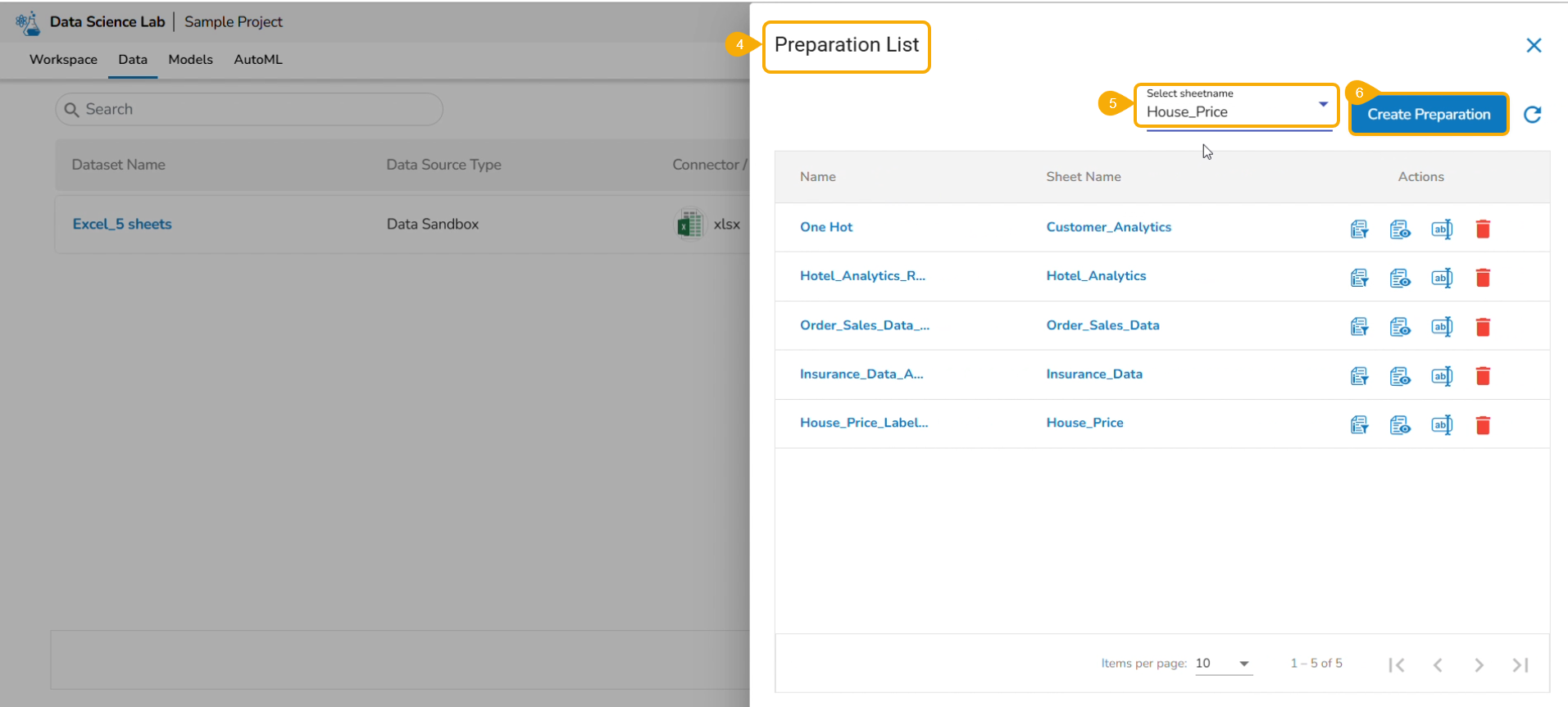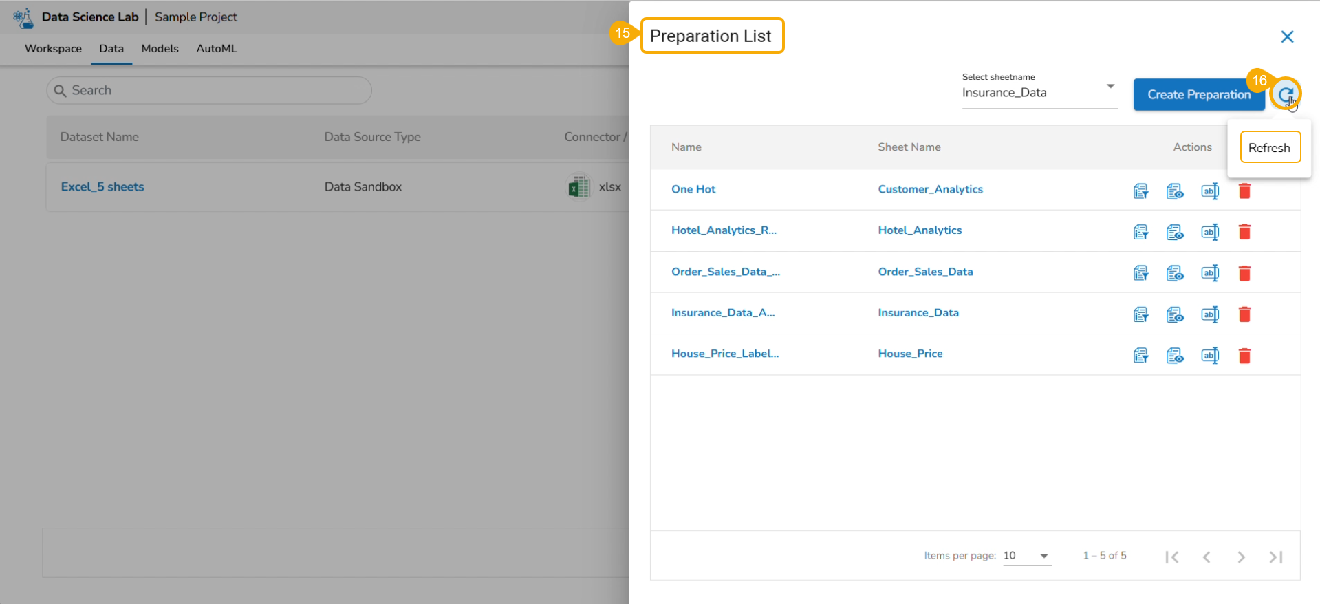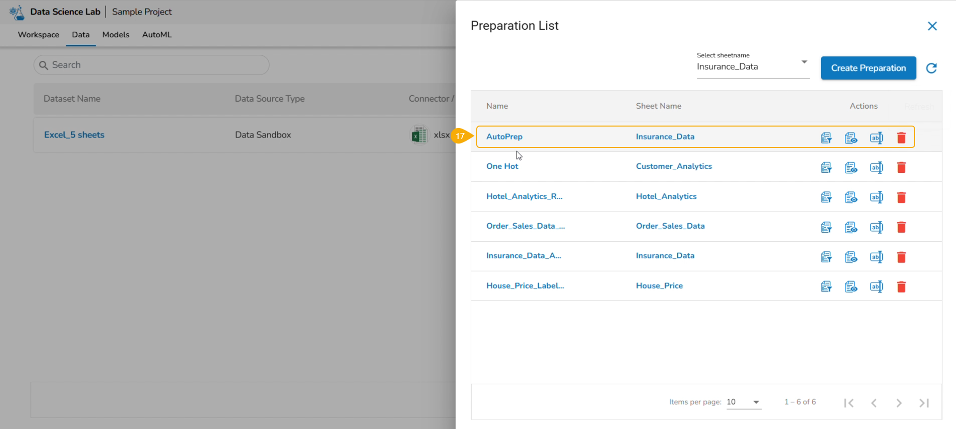 Click the Data Preparation option to create a new preparation.
