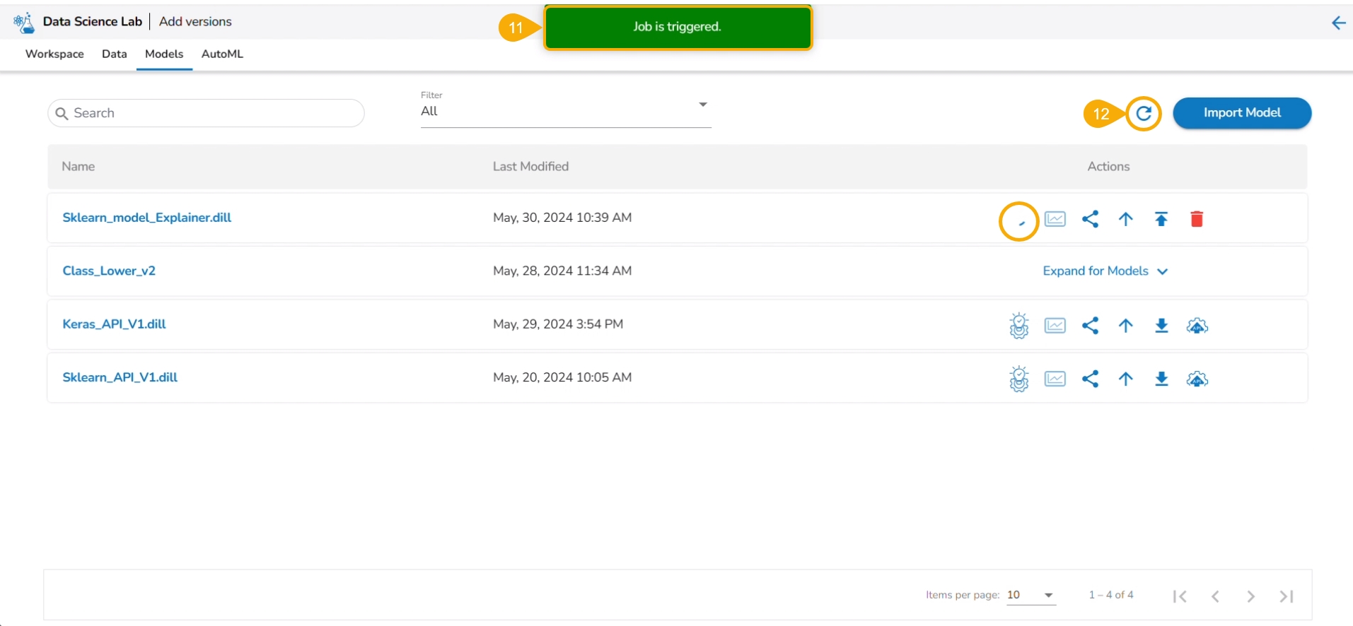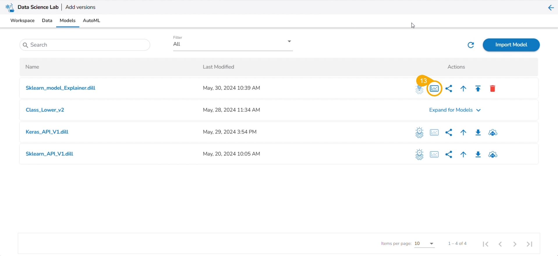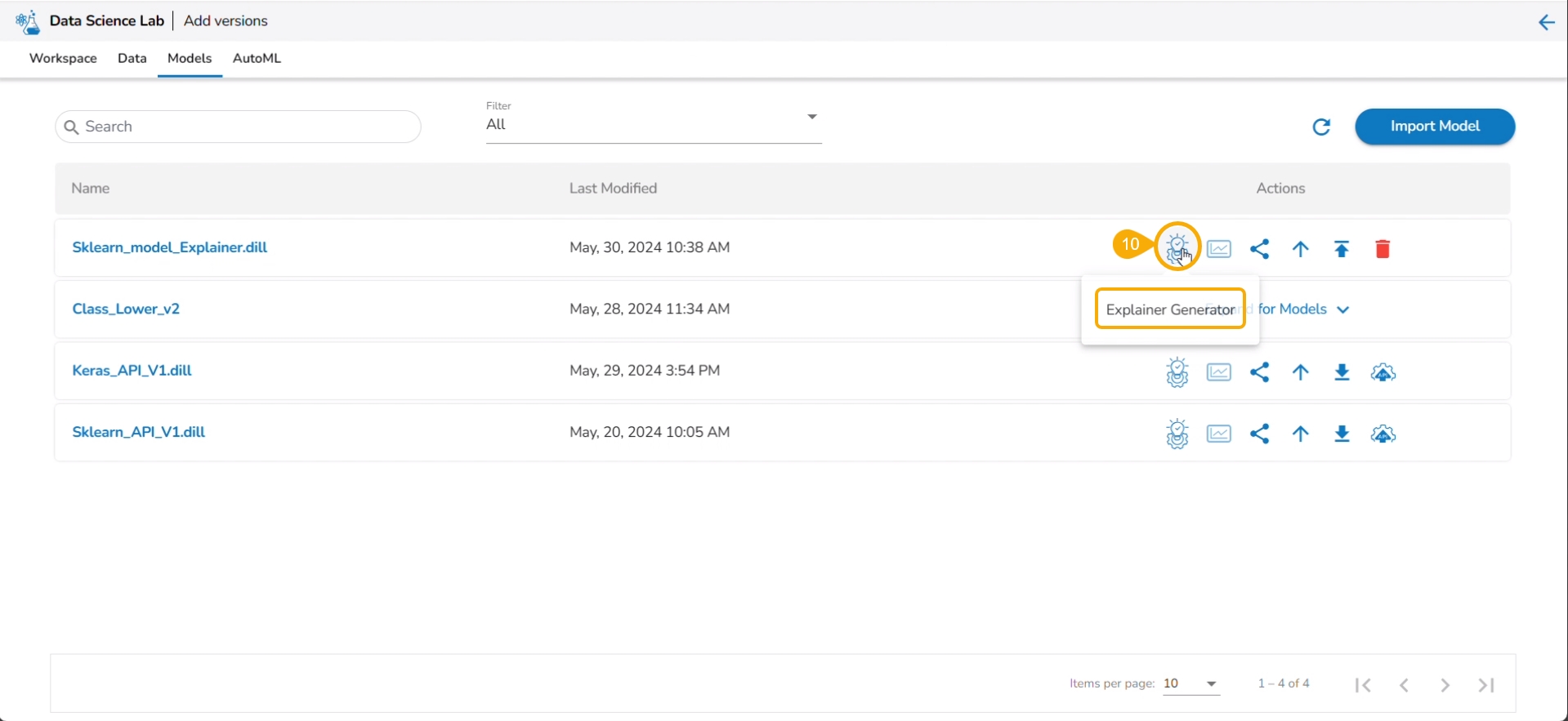 The model will be listed at the top of the list. Click the Explainer Creator icon.