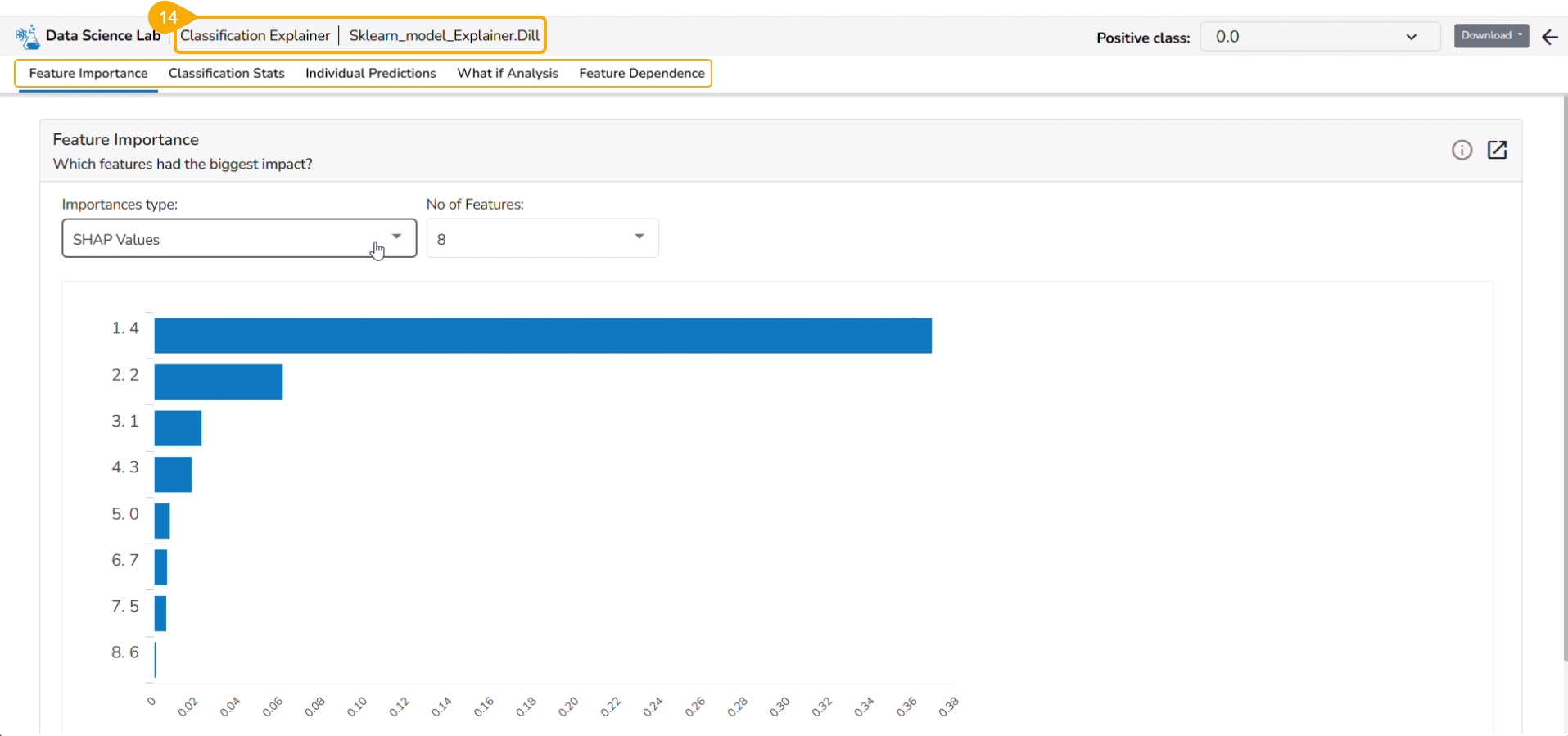 The Explainer icon is enabled for the model. Click the Explainer icon.