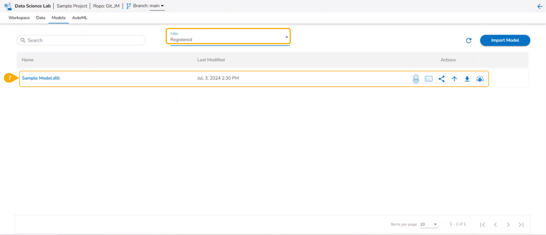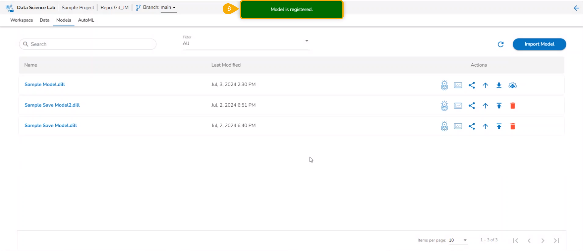 To register a model implies pushing the model into the Pipeline environment where it can be used for inferencing when Production data is read.