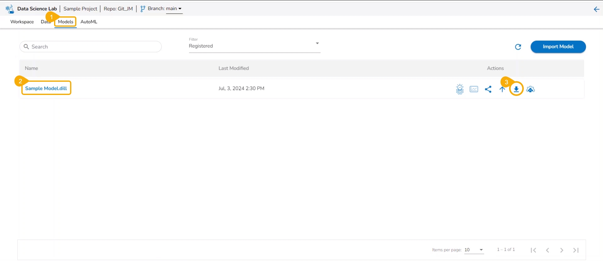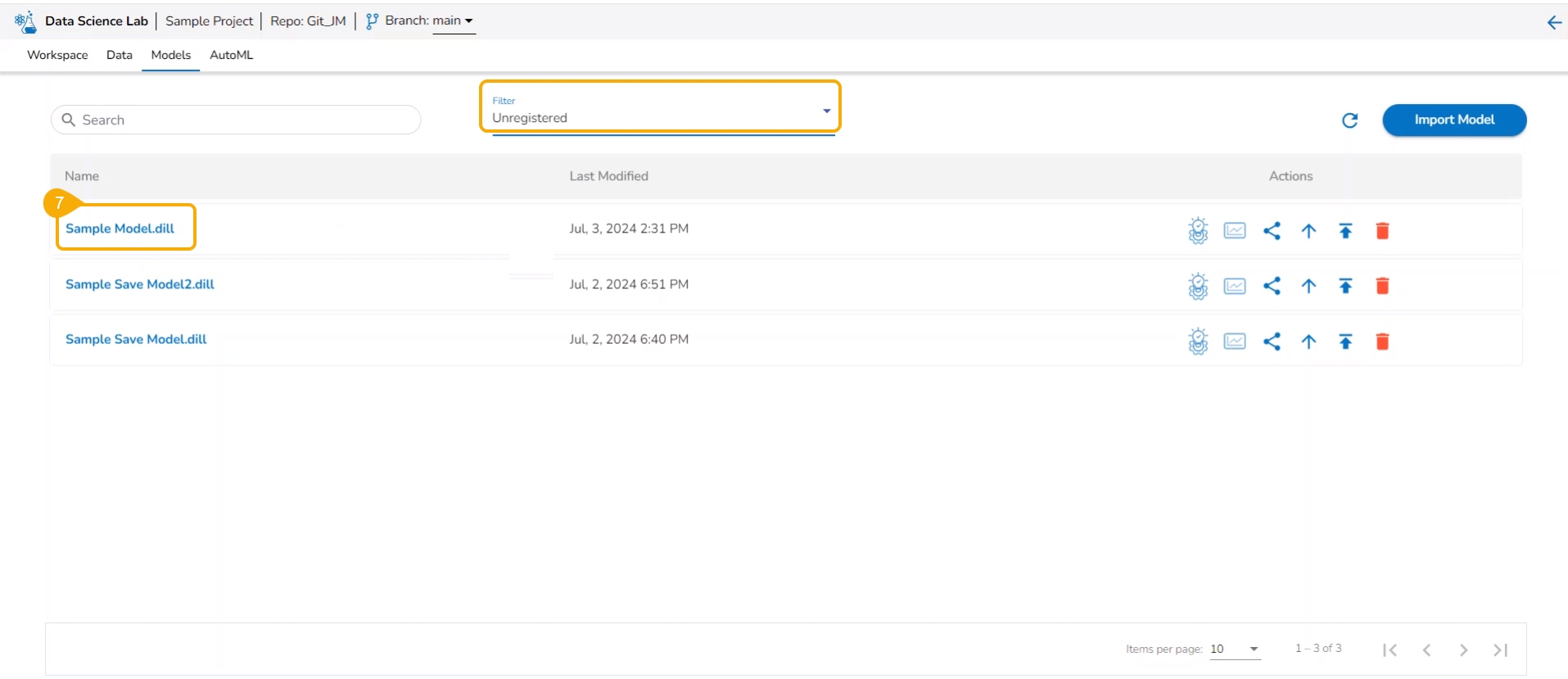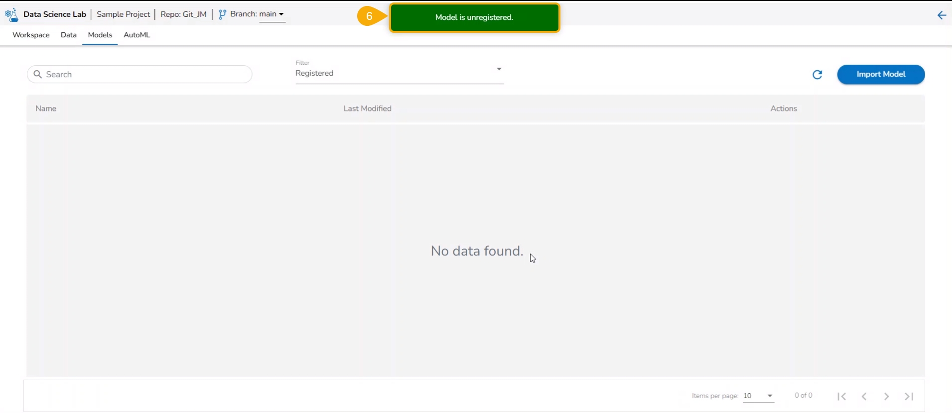 Check out the illustration on unregistering a model functionality using the Models tab.