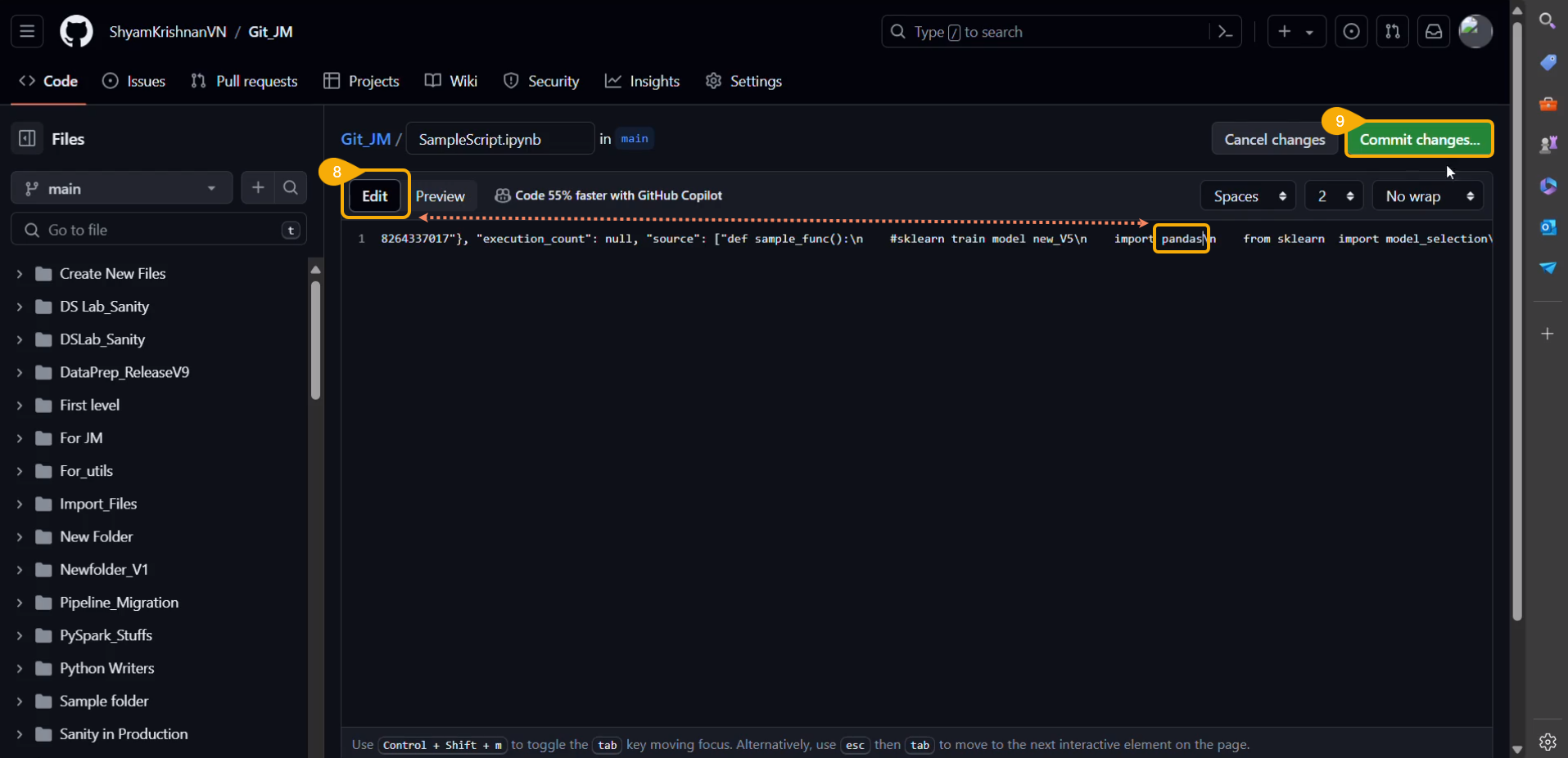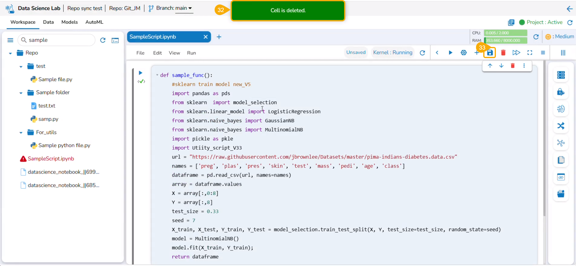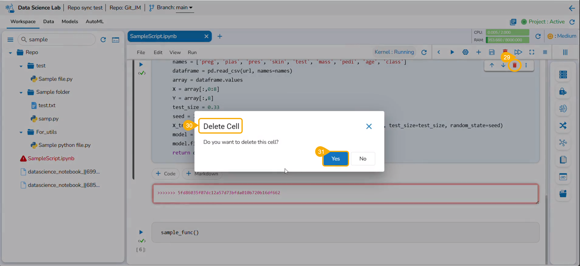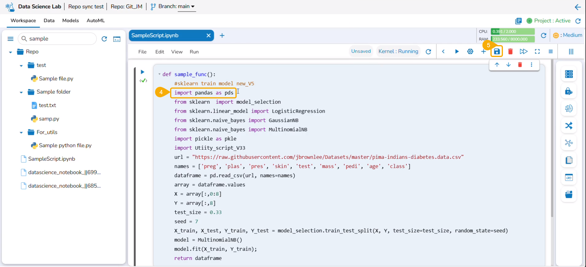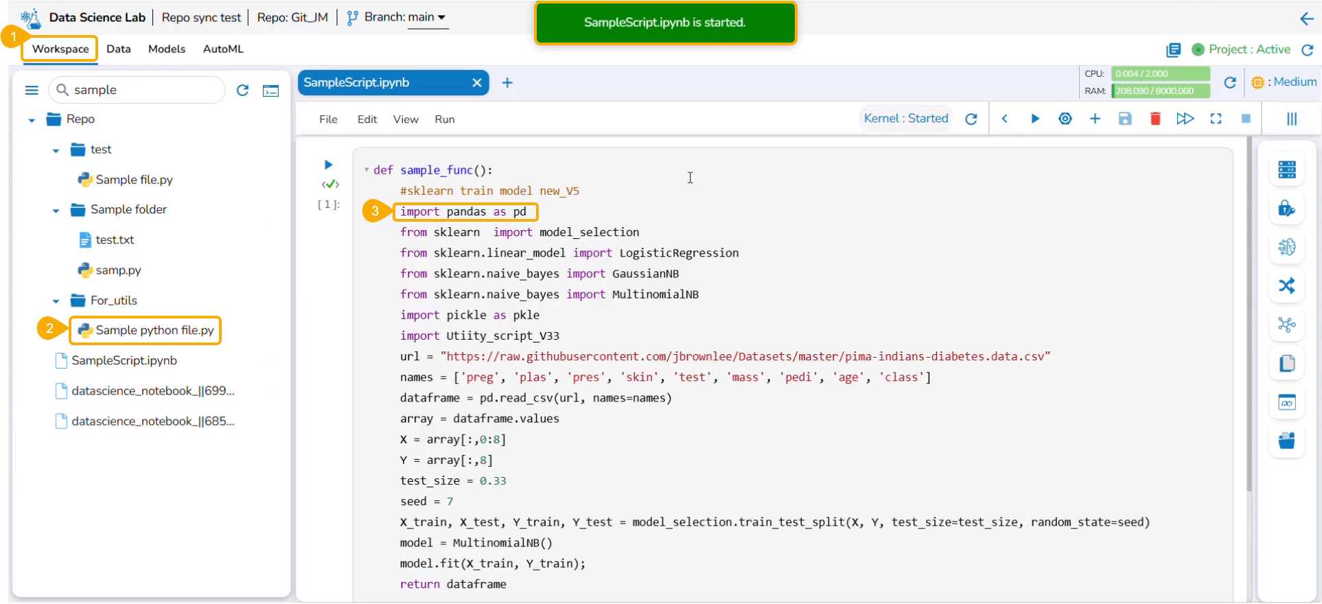 Git Console functionality helps the data scientists apply various Git commands to their Notebook scripts inside the Repo Sync projects.