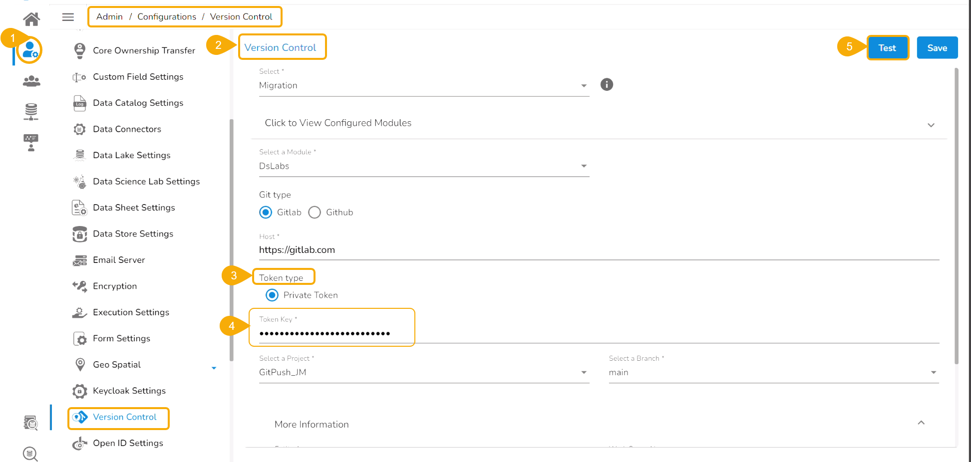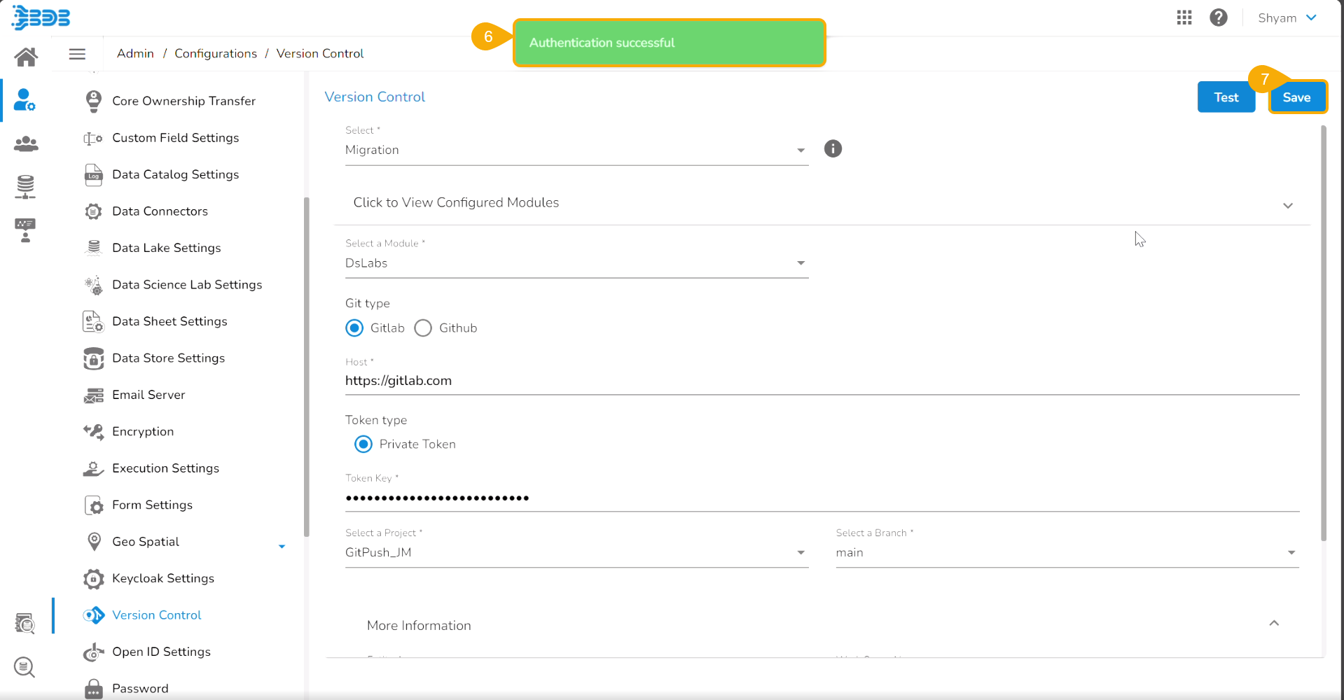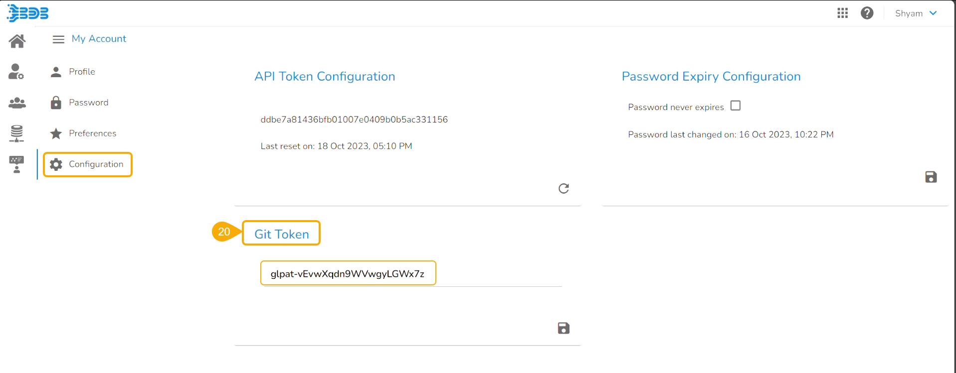 The same token gets updated under the Git Token section which was provided under the Configuration section.