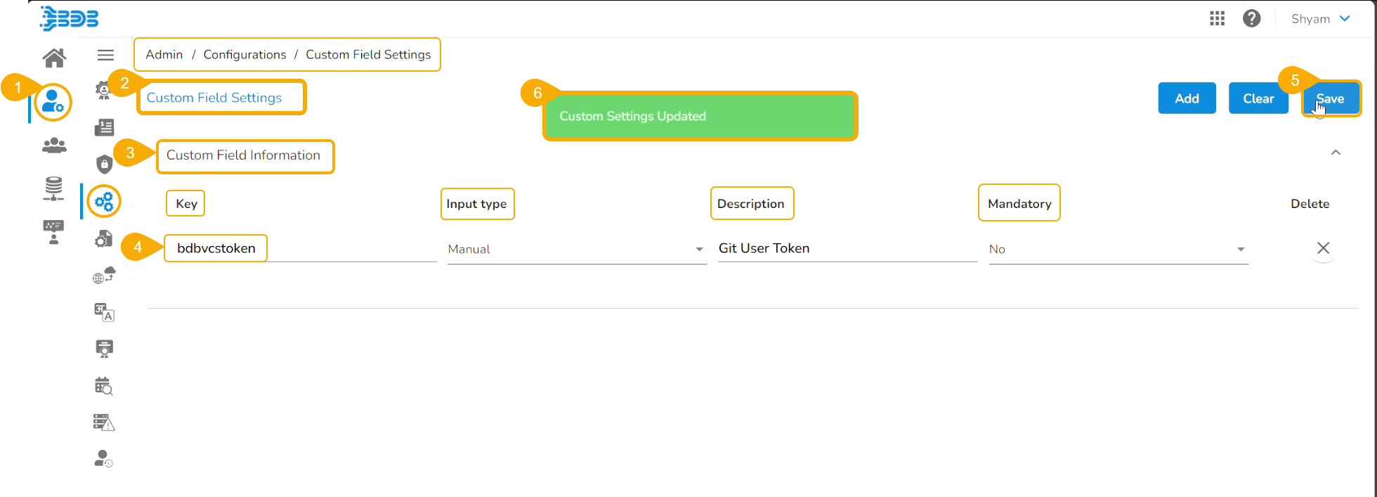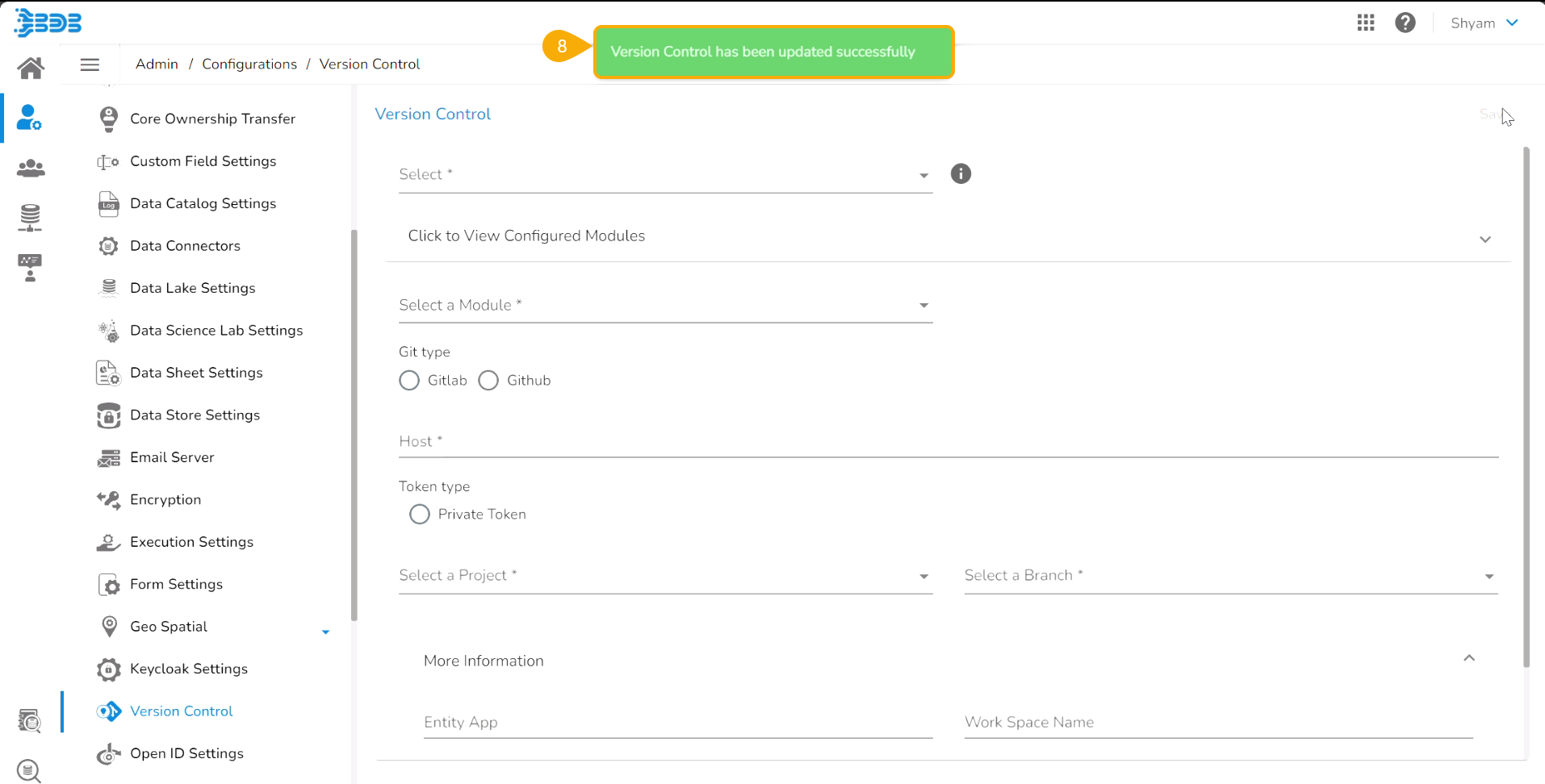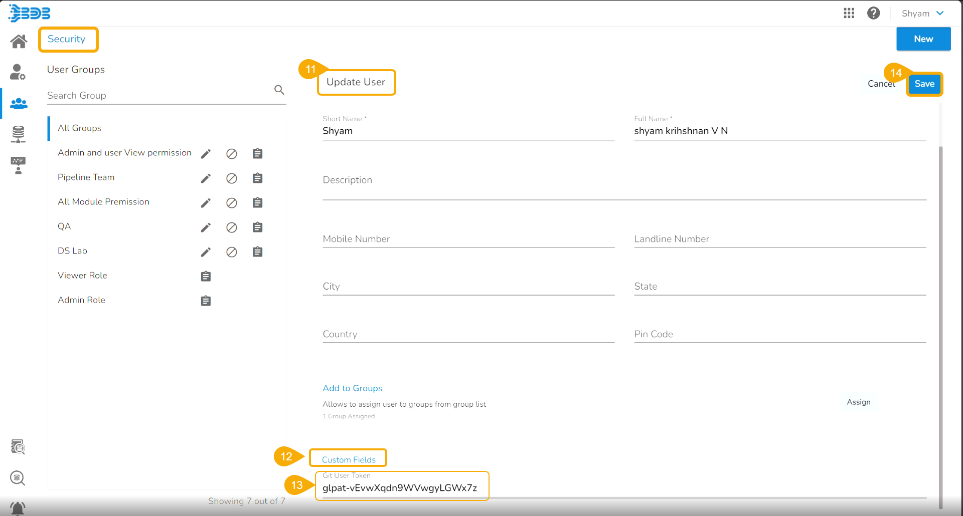 The same token gets updated under the Git Token section which was provided under the Configuration section.