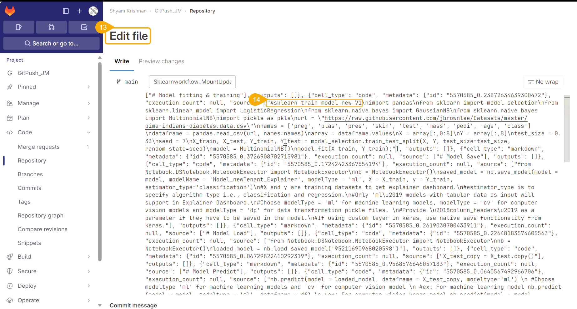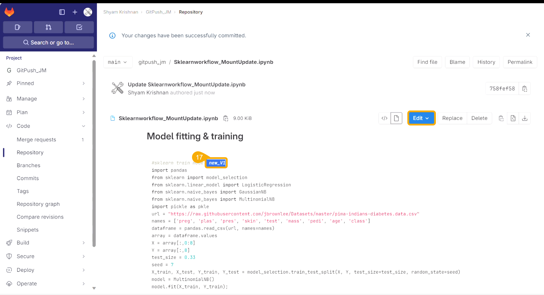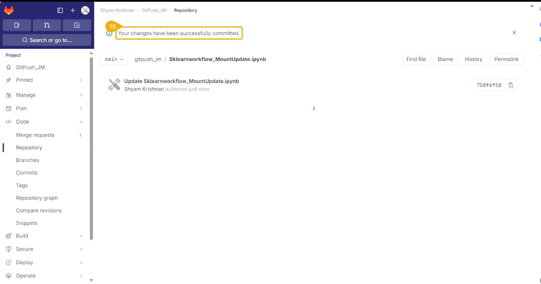 Navigate to the Git repository and access the pushed version of the Notebook script.