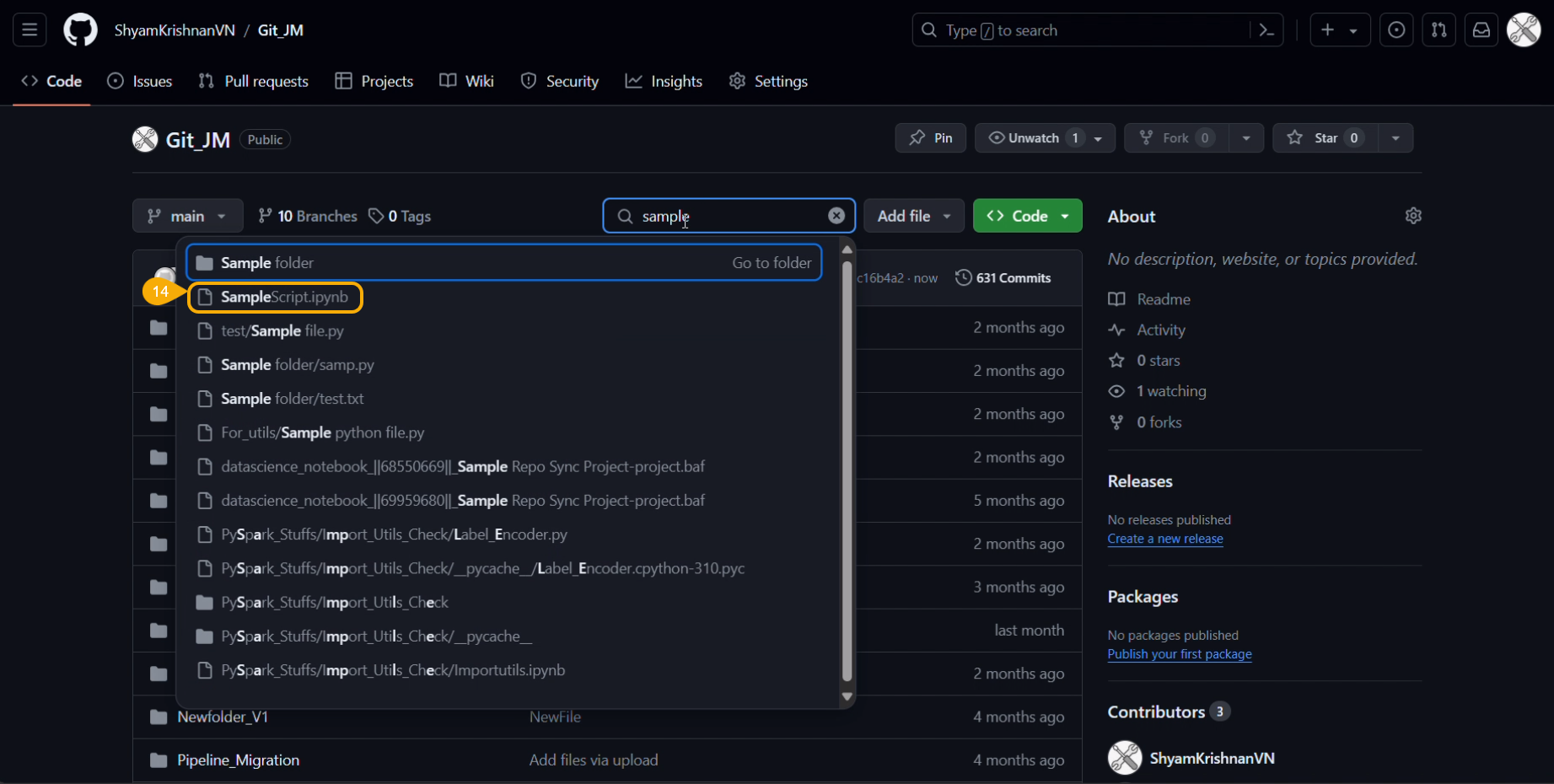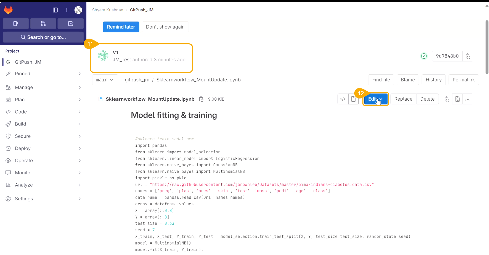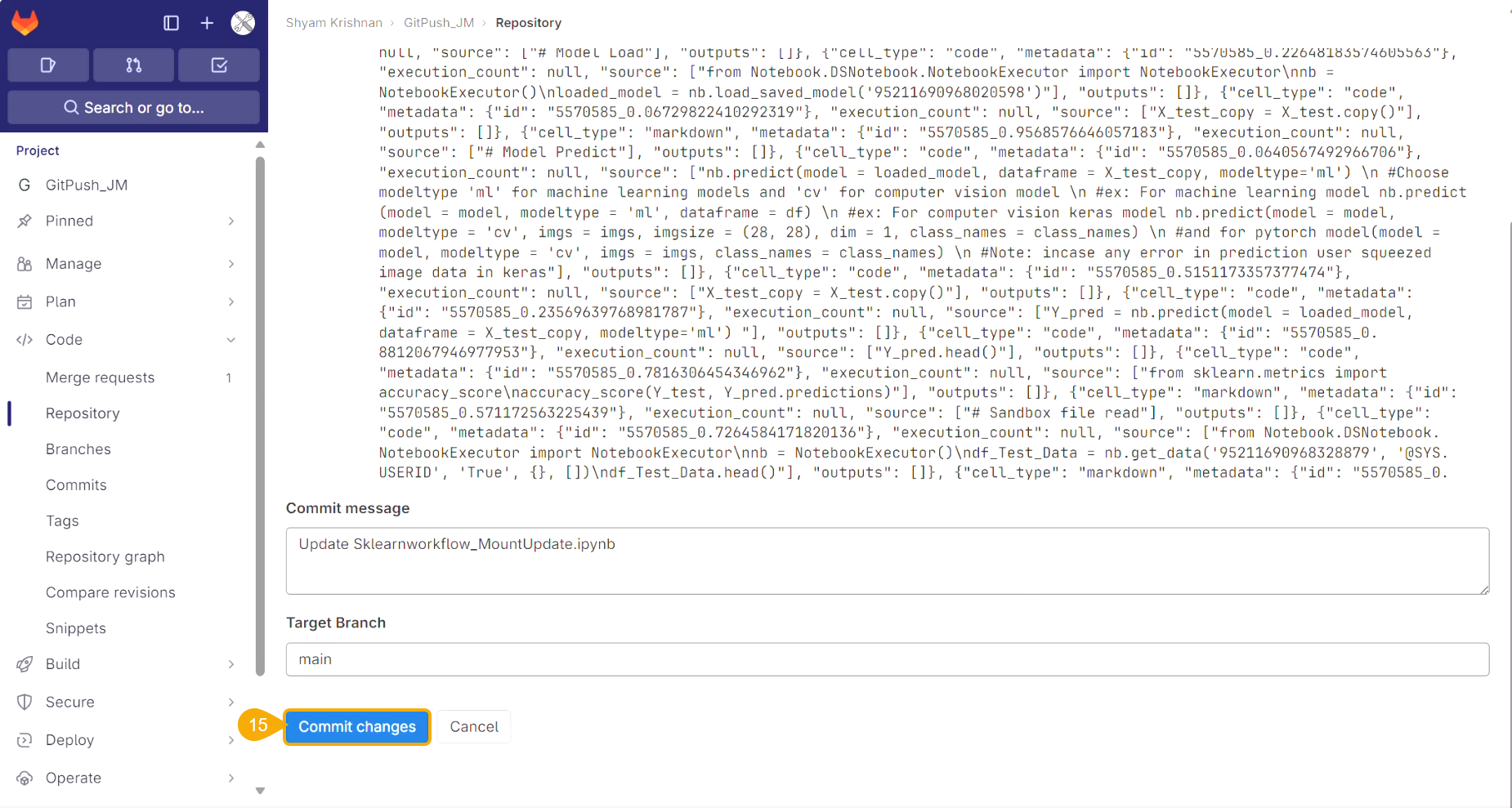 Navigate to the Git repository and access the pushed version of the Notebook script.