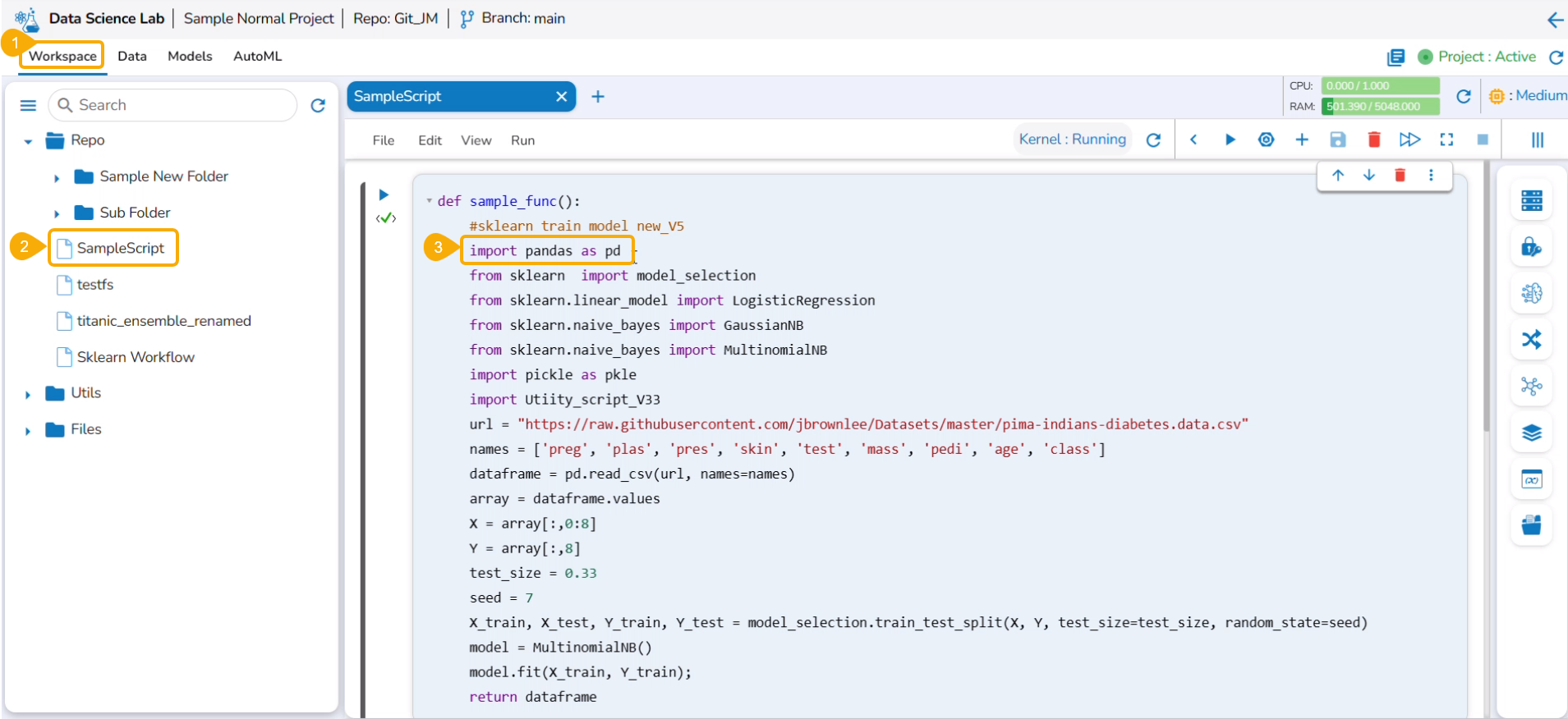 You can bring your Python script to the Notebook framework to carry forward your Data Science experiment.