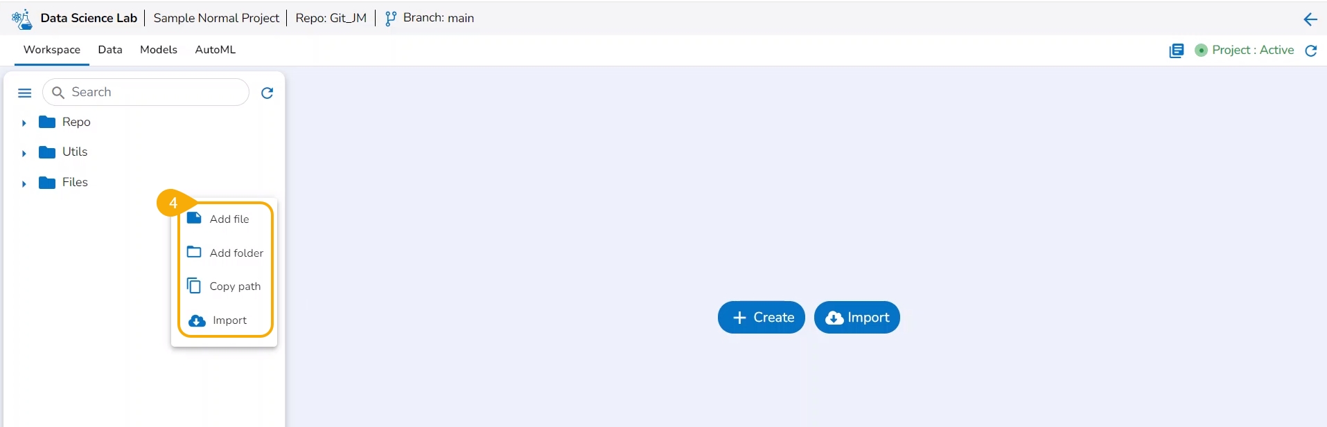 Check out the illustration on using the Copy path functionality inside the File folder of a normal Data Science Project.